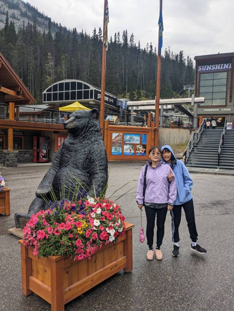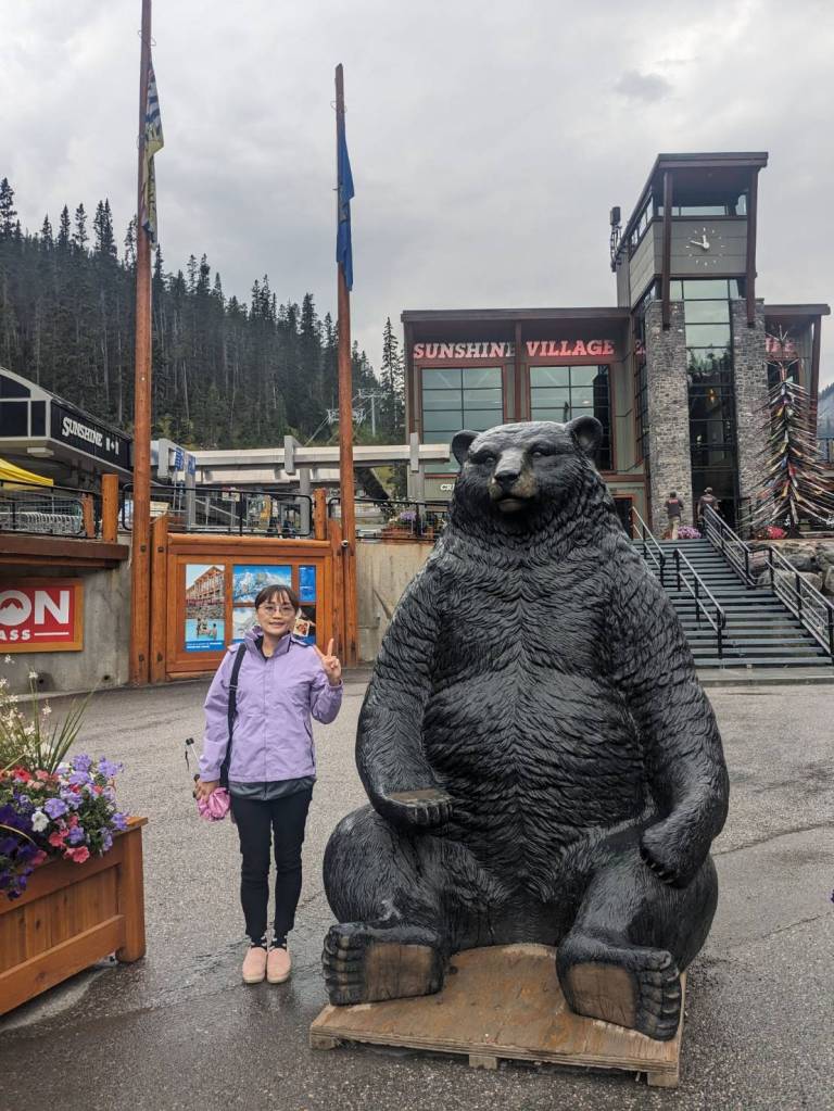 在纜車站外面與黑熊雕像及纜車合照,也是挺有趣的。