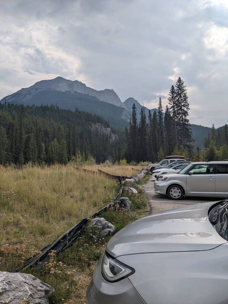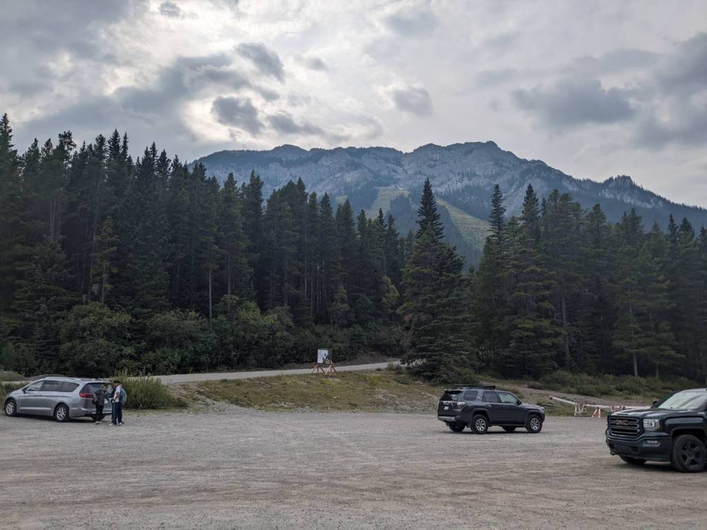 停車場就在這個下坡,後方就是Mount Norquay,雪季就是廣大的滑雪場。