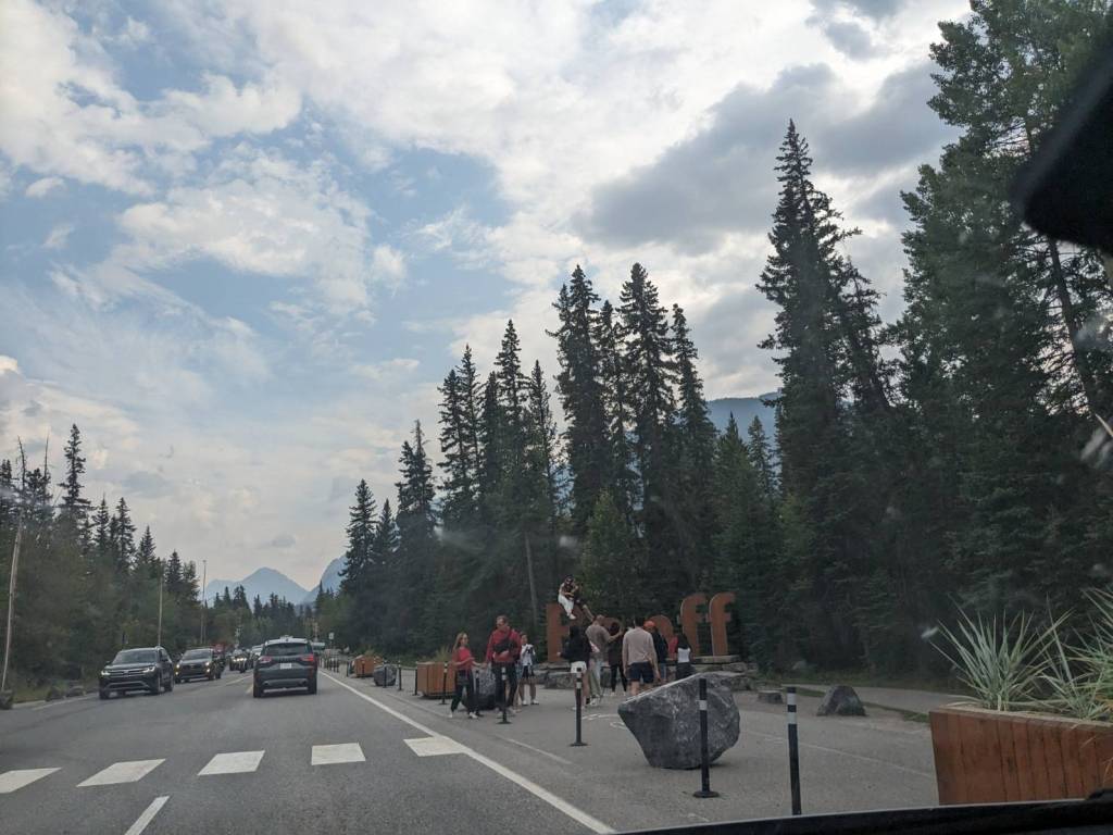 「班夫」進城的地標總是聚滿很多旅客拍照。
