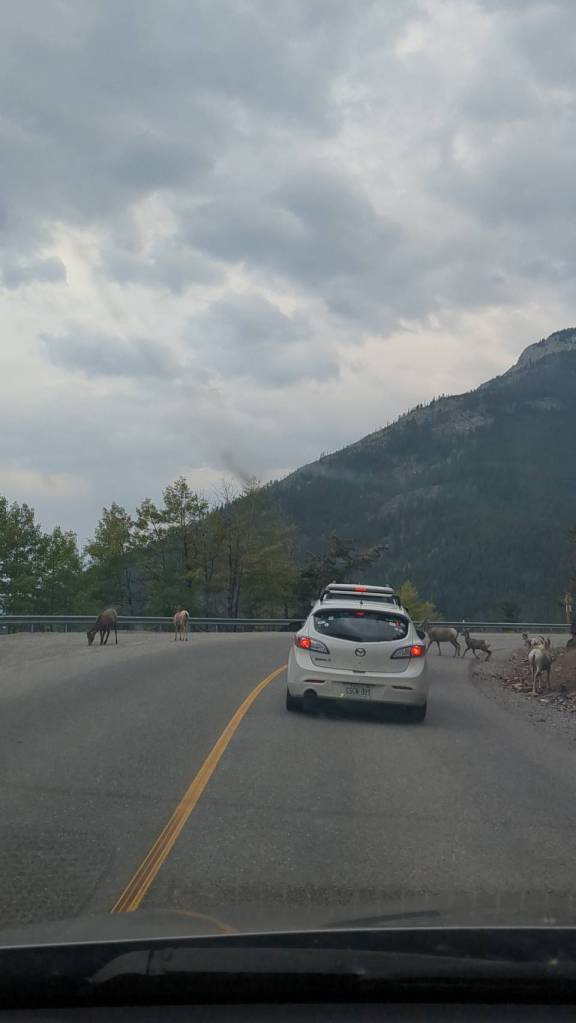 接下來往Mount Norquay的途中,遇到了「動物塞車」(Wildlife Jam),這種5分鐘的塞車真是療癒呀!