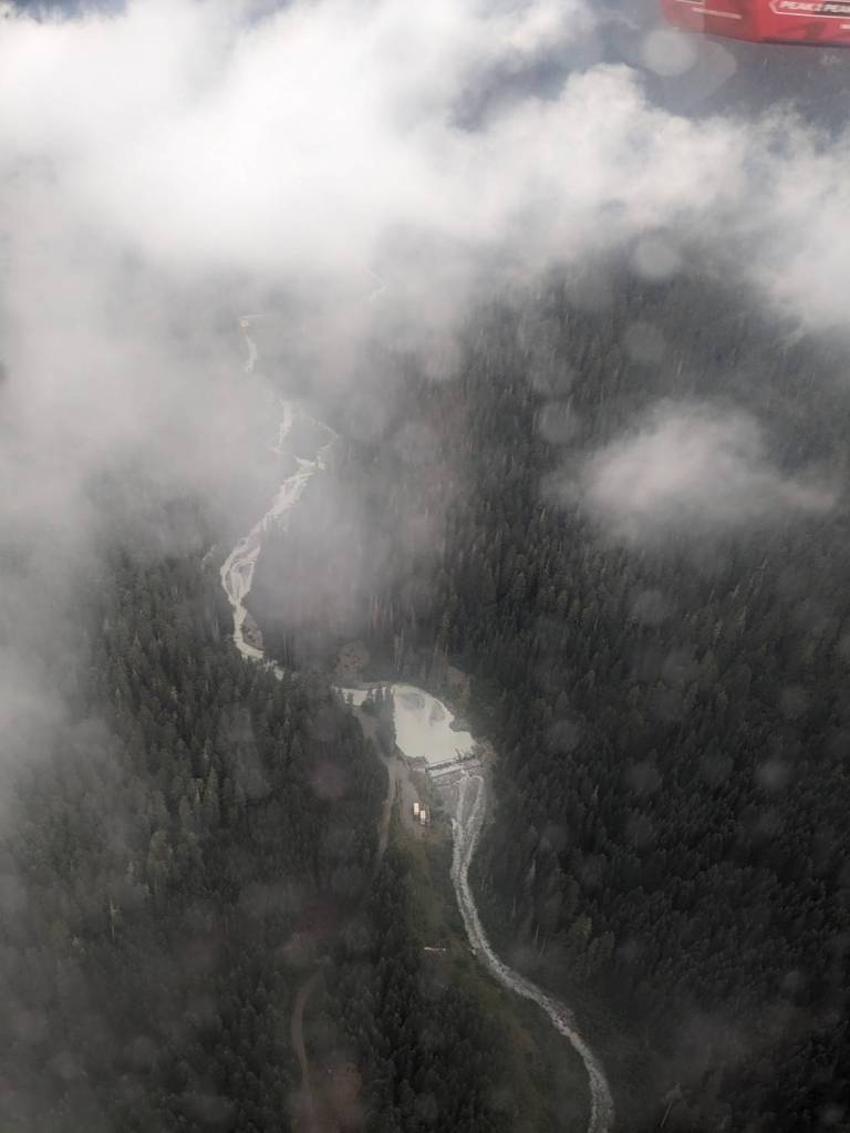可以往下看到「菲茨西蒙斯溪」(Fitzsimmons creek)的水力發電廠。