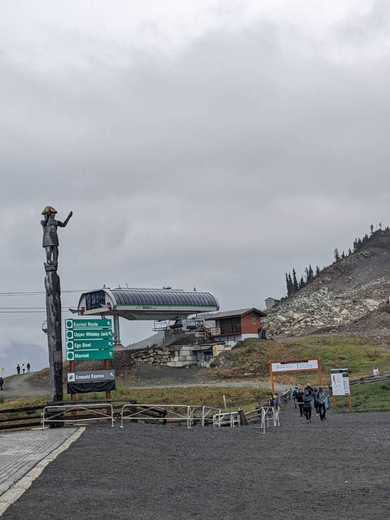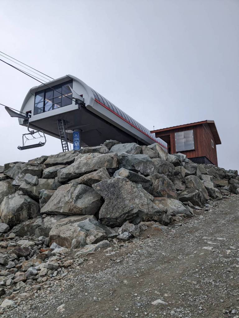 往上走了50分鐘後,抵達Little Whistler Peak,這裡是Express Harmony6吊椅的終點站。