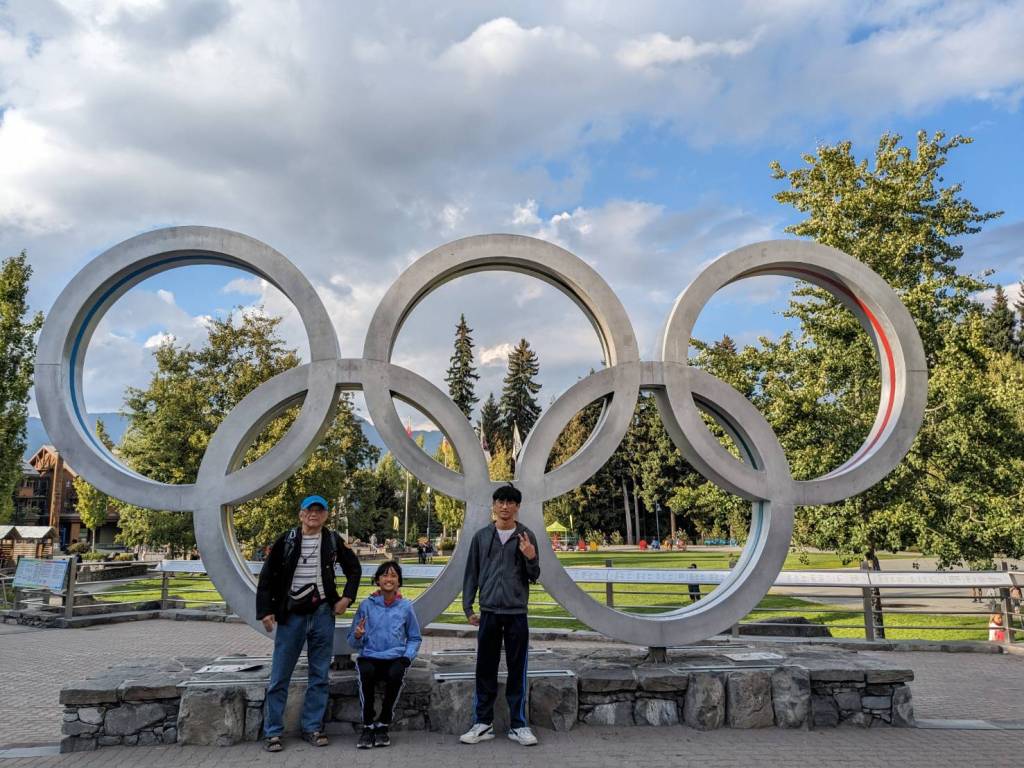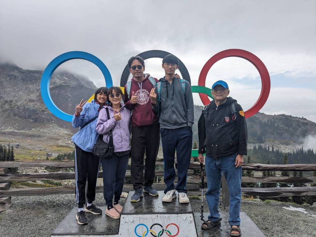 全家人在「奧運標誌拍照平台」(Olympic Photo Platform)上合影留念。