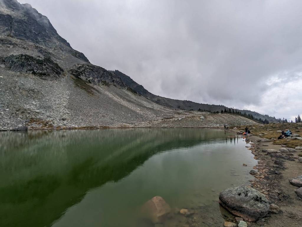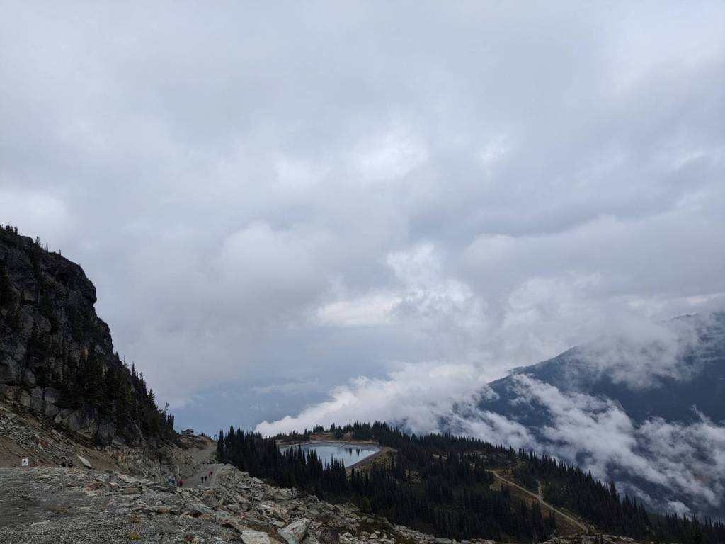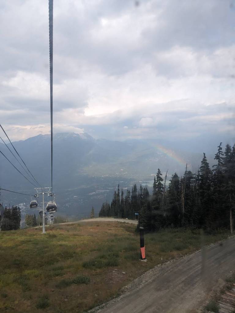 可以看到「失落之湖」上方的彩虹,今日「惠斯勒」的天氣是時雨時陰,山頂溫度會10幾度左右而已,並且會下雨。
