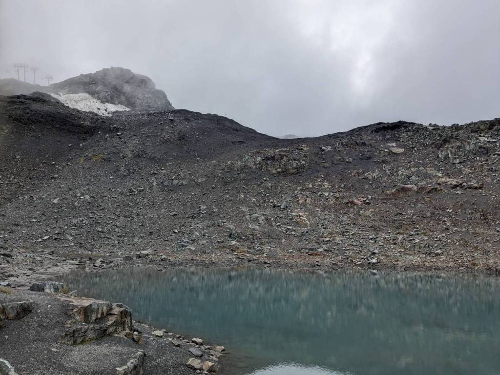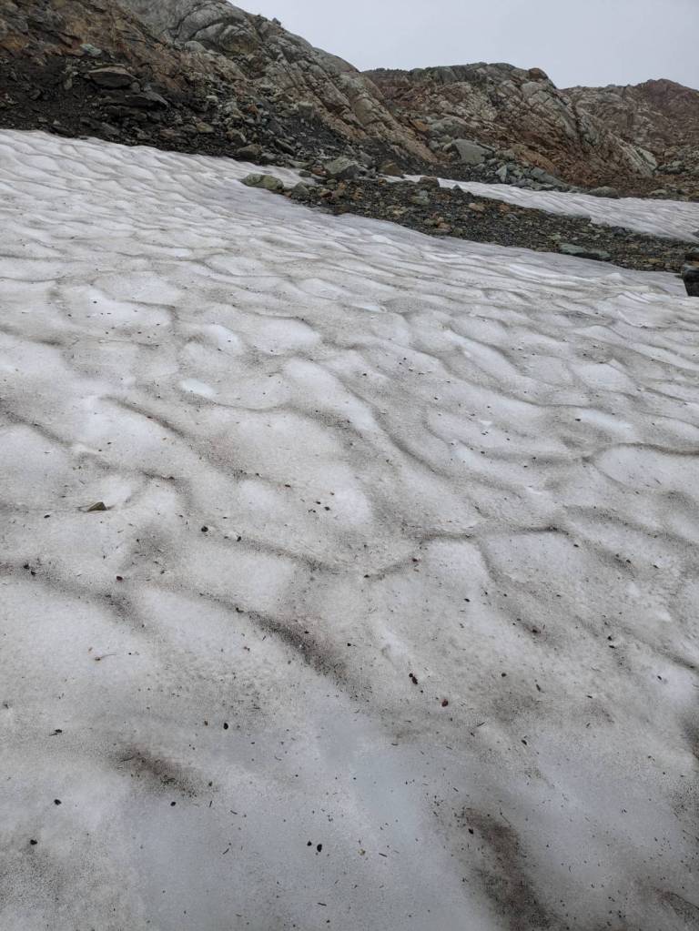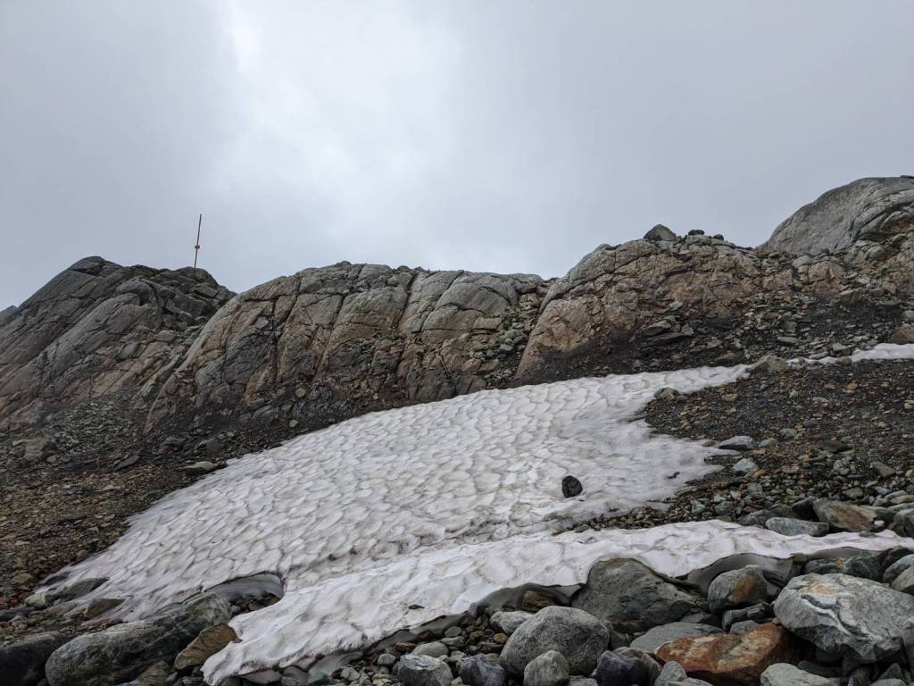 繼續往上有一處可以碰觸得到的冰川,可說是終年不融的冰塊。