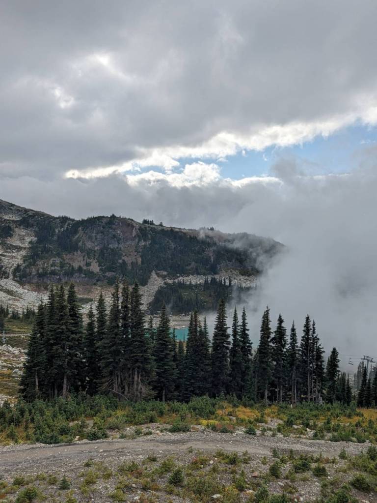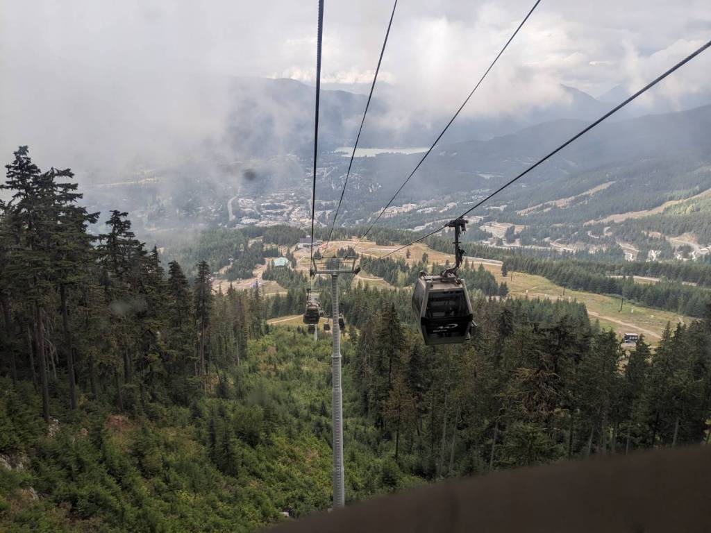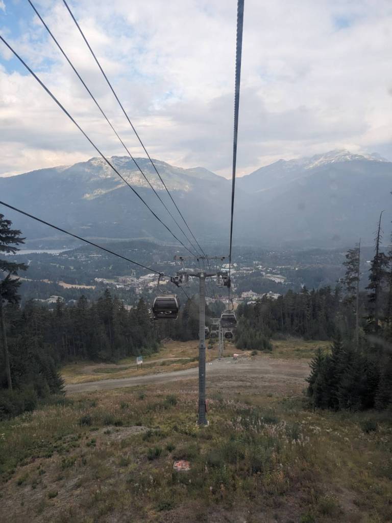 纜車越往上越能看到「惠斯勒」地區美景,左邊可看到「阿爾它湖」(Alta Lake),右邊則是「失落之湖」(Lost Lake),正前方是「彩虹山」(Rainbow Mountain)。