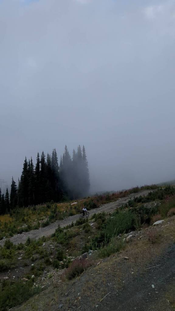 所有的越野單車手都是從「惠斯勒山纜車站」往返的,看到上山的人幾乎是帶單車的選手。