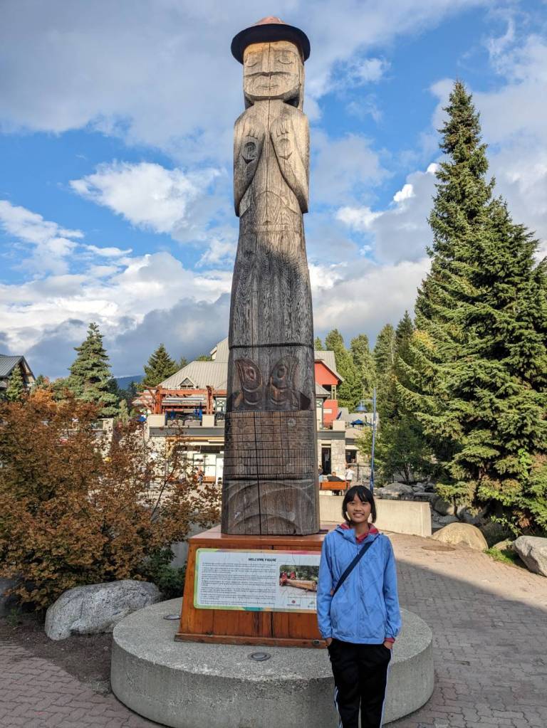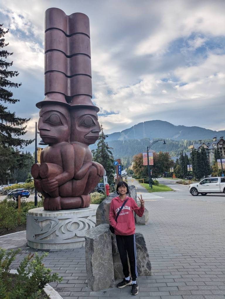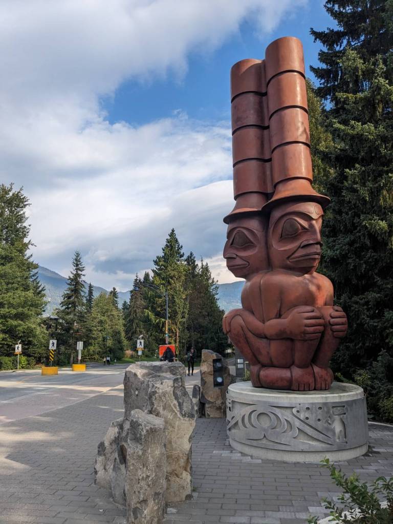在「奧丹藝術博物館」(Audain Art Museum)入口處設置的藝術品,裡面展示有獨特的土著藝術、面具及加拿大知名女藝術家「艾蜜莉·卡爾」(Emily Carr)的迷人作品。