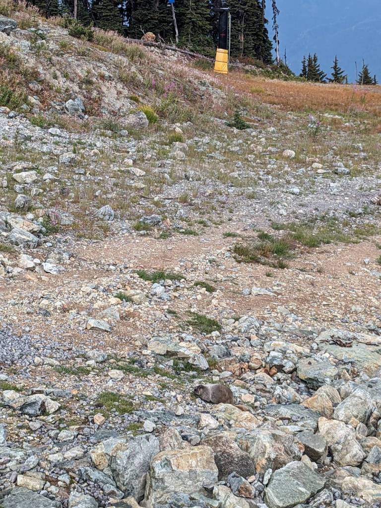 先是看到一隻黑梳山土撥鼠在石堆中覓食。