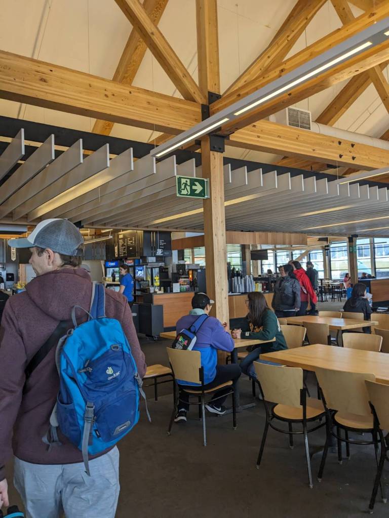 下午1點20分走回「黑梳山頂纜車站」(Blackcomb Gondola),在旁邊的大型複合式餐廳上廁所休息,裡面溫暖許多,也有提供免費的WIFI可以上網。