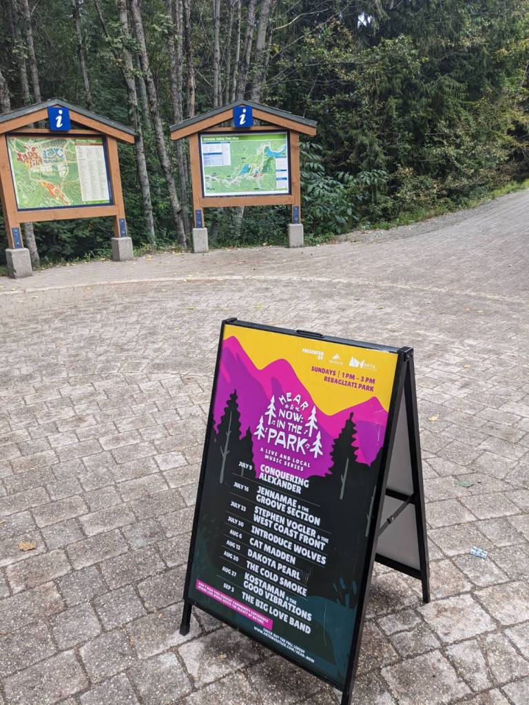 走了10分鐘左轉進入林間小徑–「Valley Trail」,越過「黑梳山溪」(Blackcomb Creek)後來到「瑞巴格利亞提公園」(Rebagliati Park),它是以一名加拿大單板滑雪運動員「羅斯・瑞巴格利亞提」(Ross Rebagliati)的名字命名,他在1998年冬季奧運會男子大迴轉項目中獲得金牌。公園有綠地、板凳椅子與野餐桌,可惜沒有洗手間可以使用。