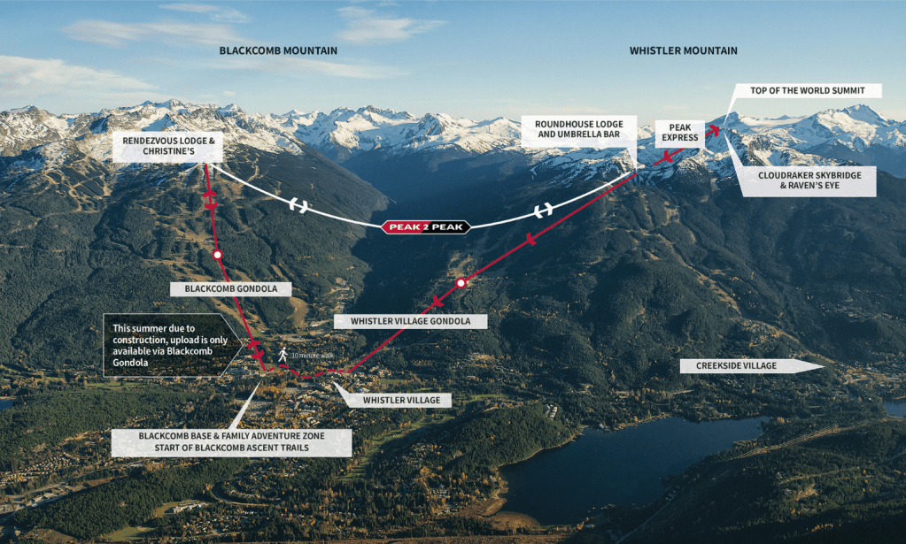 該接駁纜車位於「惠斯勒山」及「黑梳山」之間,2008年12月建成,全長共4.4公里,3,030公尺的連續無支撐跨度與436公尺的離地高度,同時創下了兩項世界紀錄,除了冬季滑雪之用外,它也是惠斯勒一項標誌性的旅遊項目。