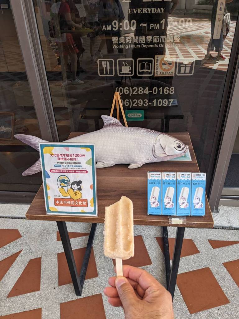 順便買了一支虱目魚冰棒試試,原來裡面是摻虱目魚鬆呀!