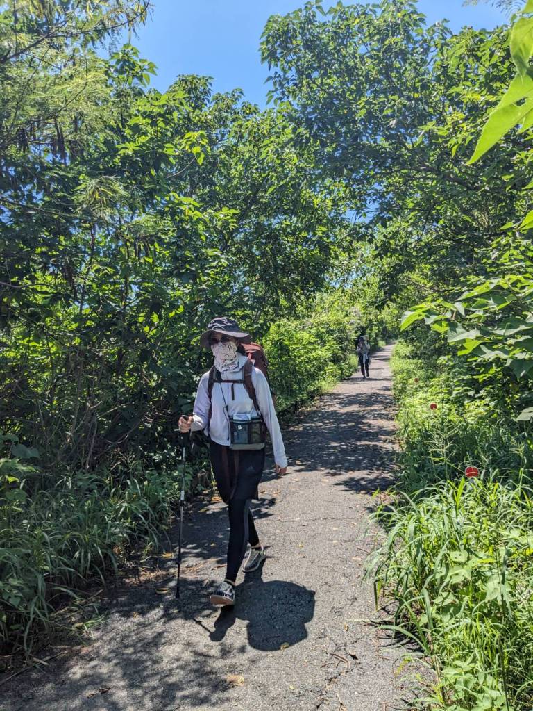 快下午2點了,我們還沒到達第一休息點,姊姊把她的秘密武器—雨傘拿出來擋陽光了。