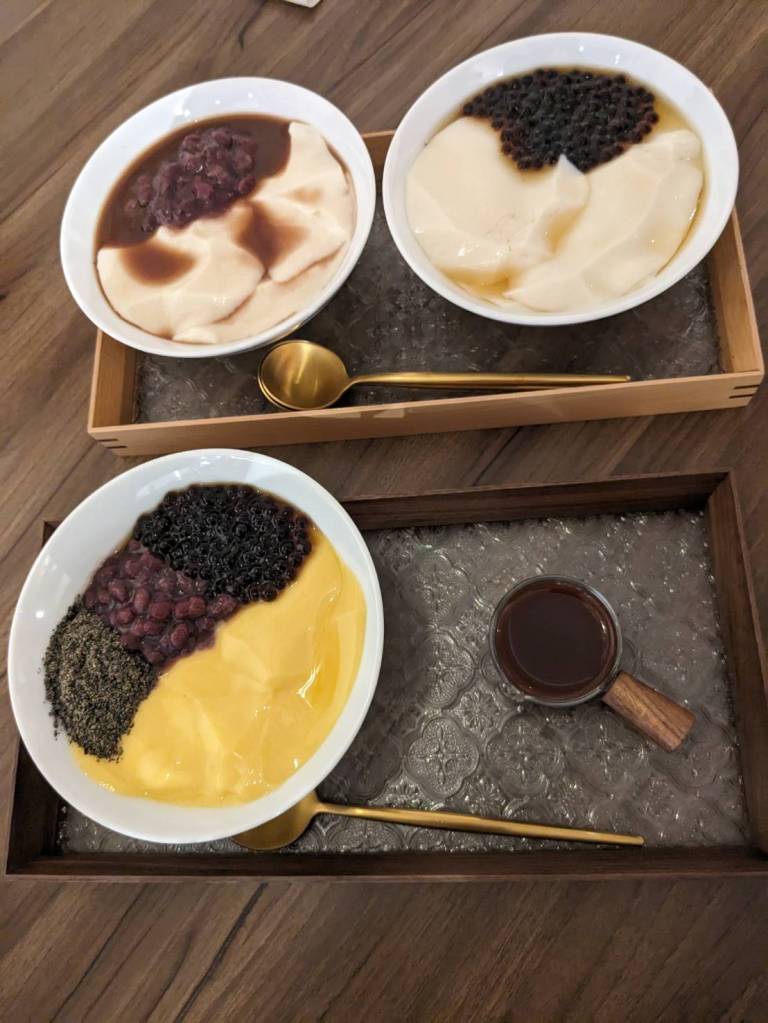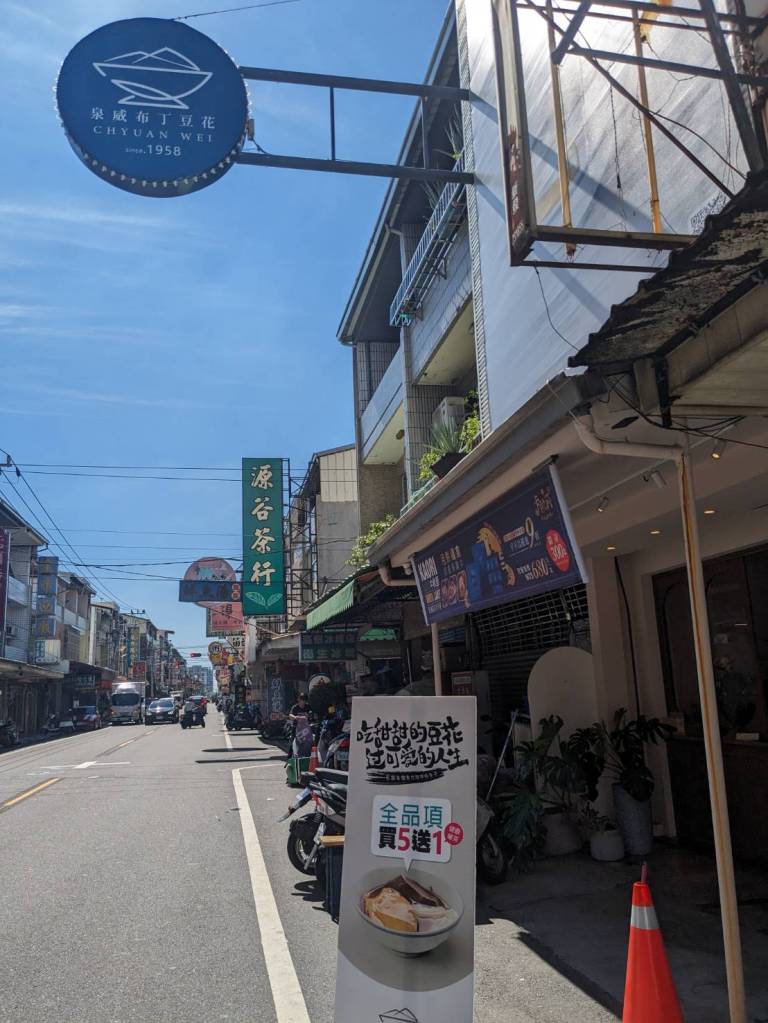 下午2點半,又走了1.5公里後,由於受不了太陽的荼毒,來到國安街的「泉威布丁豆花」吃點豆花吹冷氣,因為我們大家的水都喝光了,老闆好心地裝了3罐水給我们。