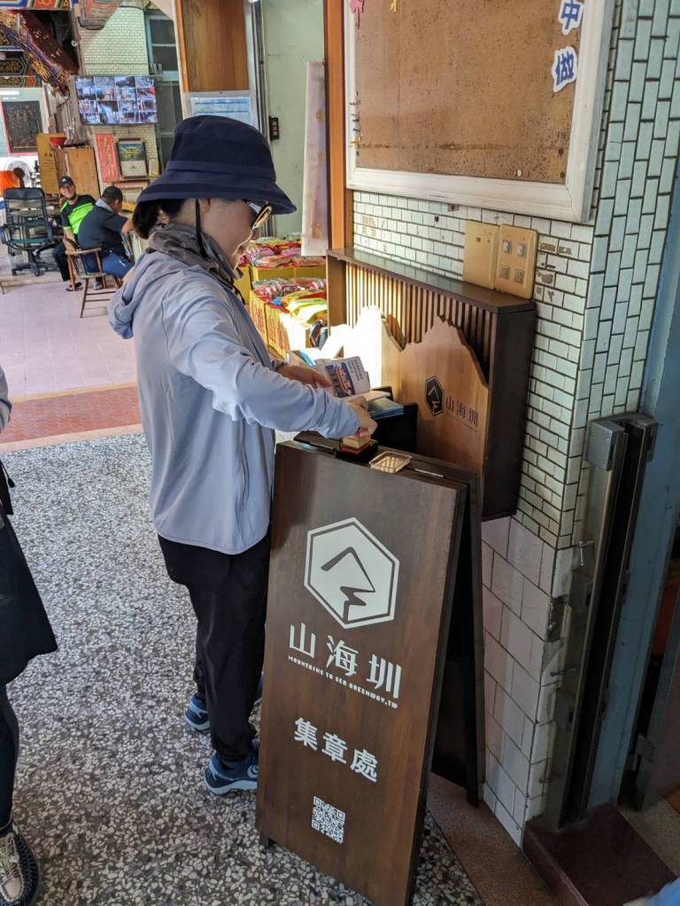 大家開心地輪流蓋章,這一印代表著上半天的努力與汗水,旁邊也有阿姨跟我們聊天,給我們加油打氣。