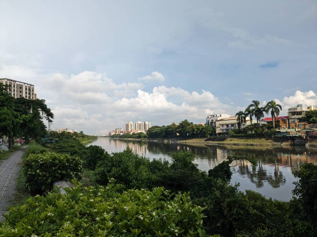 這條鬧中有靜的河堤單車道,兩旁有綠蔭夾道,就像是綿長的綠色隧道,沿路小河相伴,走起來很舒服。