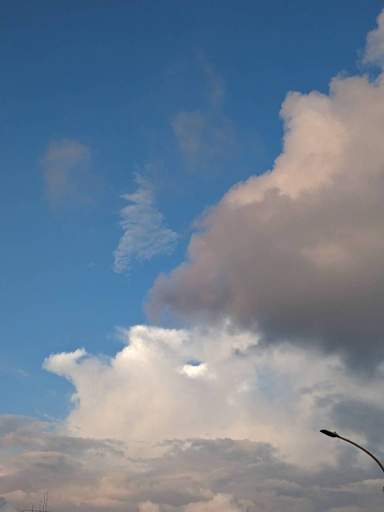 順手拍了一張有破洞的雲層照片,而進入傍晚的天空讓全身是汗的我們覺得放鬆。