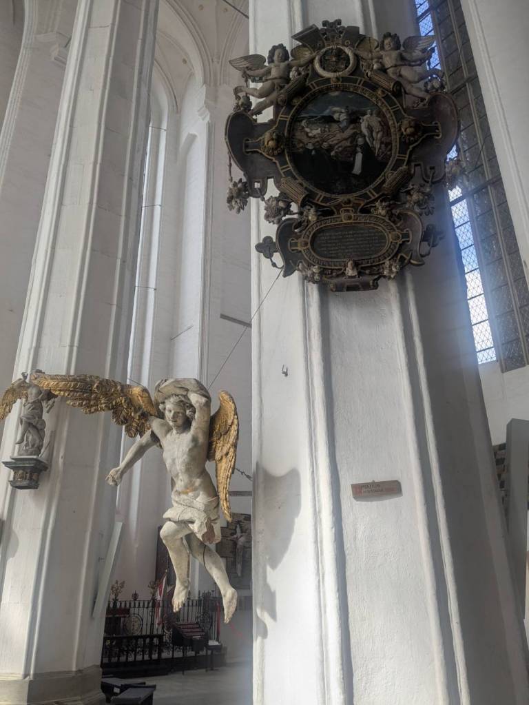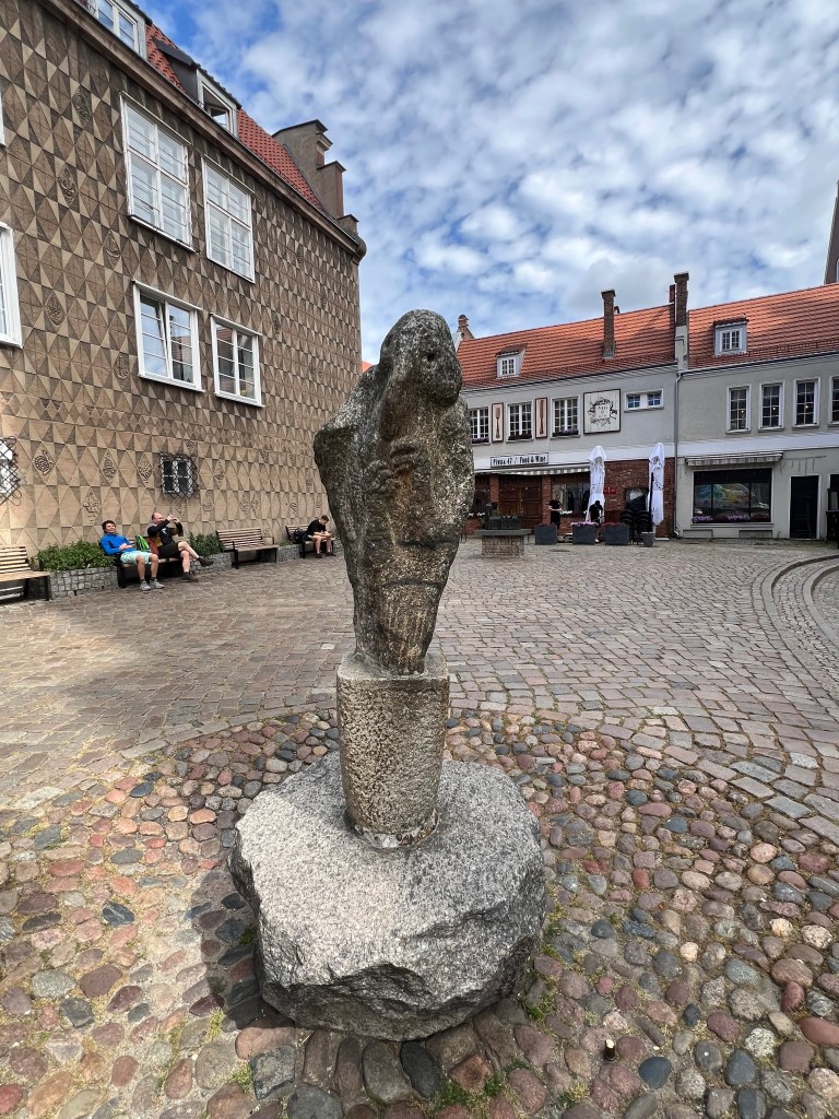 另外,大教堂前方小廣場中央,有一座神秘的石雕紀念碑,那麼不起眼又無法被人忽視。原來它是「波蘭」雕塑家–「阿方索夫斯基」(Alfons Łosowski)創作的雕塑作品–「精神」(Spirit),原本這座青銅雕塑屬於一個功能性噴泉,在1945年的慘烈戰爭中孤零零倖存下來,現在與「格但斯克」周圍的歷史建築形成了鮮明的對比,但雕塑仍坐落在寧靜的廣場上,無形地提供給繁忙的人們一個靜謐的沉思之所。