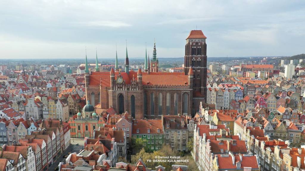 當時這座高聳於城市天際線與廣闊鄉村的雄偉主教座堂,常被稱為「格但斯克市的王冠」,共有7座尖塔、3座陶瓷塔樓及1座高達82公尺的巨大鐘樓,其頂端有兩個屋頂,屋頂間設有觀景台。