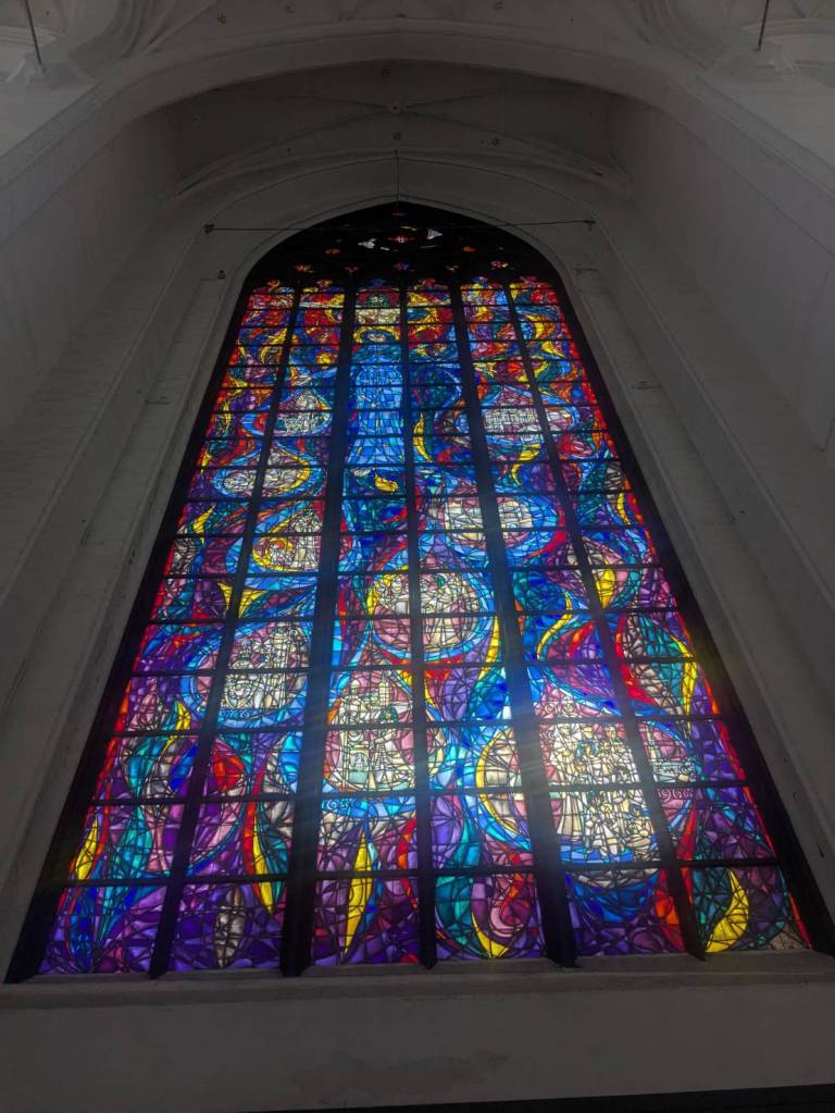 教堂內部由41扇巨大的窗戶採光,其中最大的一扇裝飾有彩繪玻璃,位於聖壇區東側。