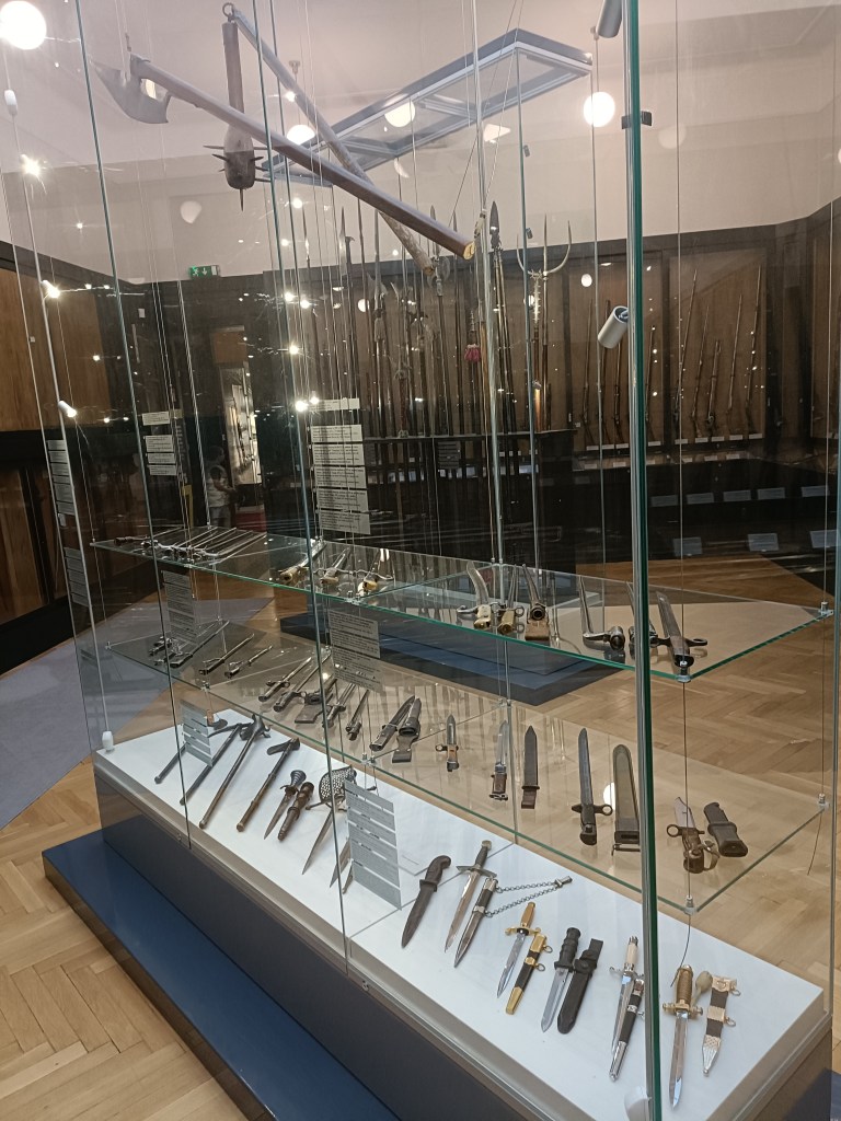 這一個房間就展示有12櫃各式古代與現代武器呢!