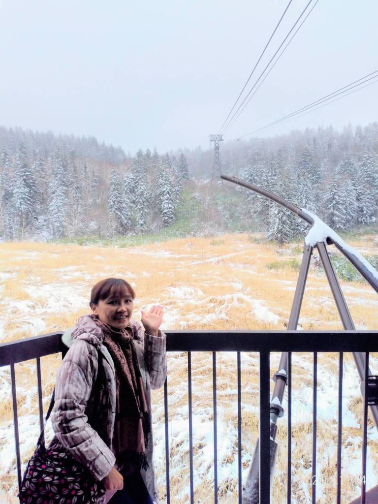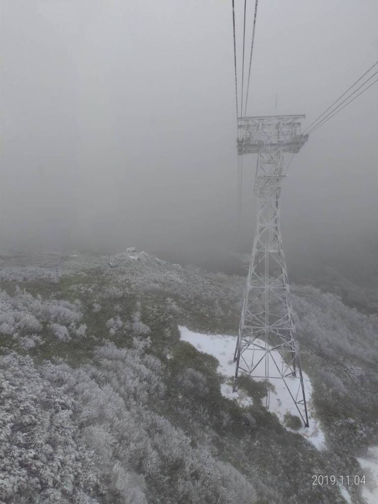 與其說從纜車上看到廣闊的雪白世界,不如說是一部黑白電影,霧濛濛的黯淡天際籠罩著冰雪山林,好似在看一張張的黑白照片播映著。