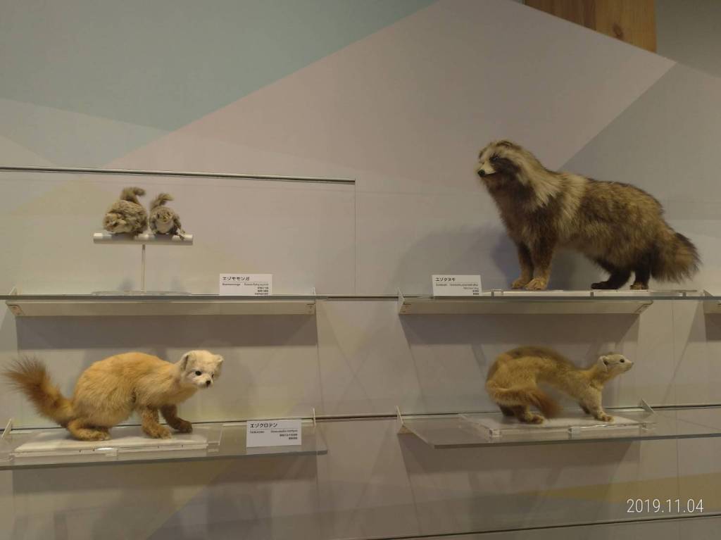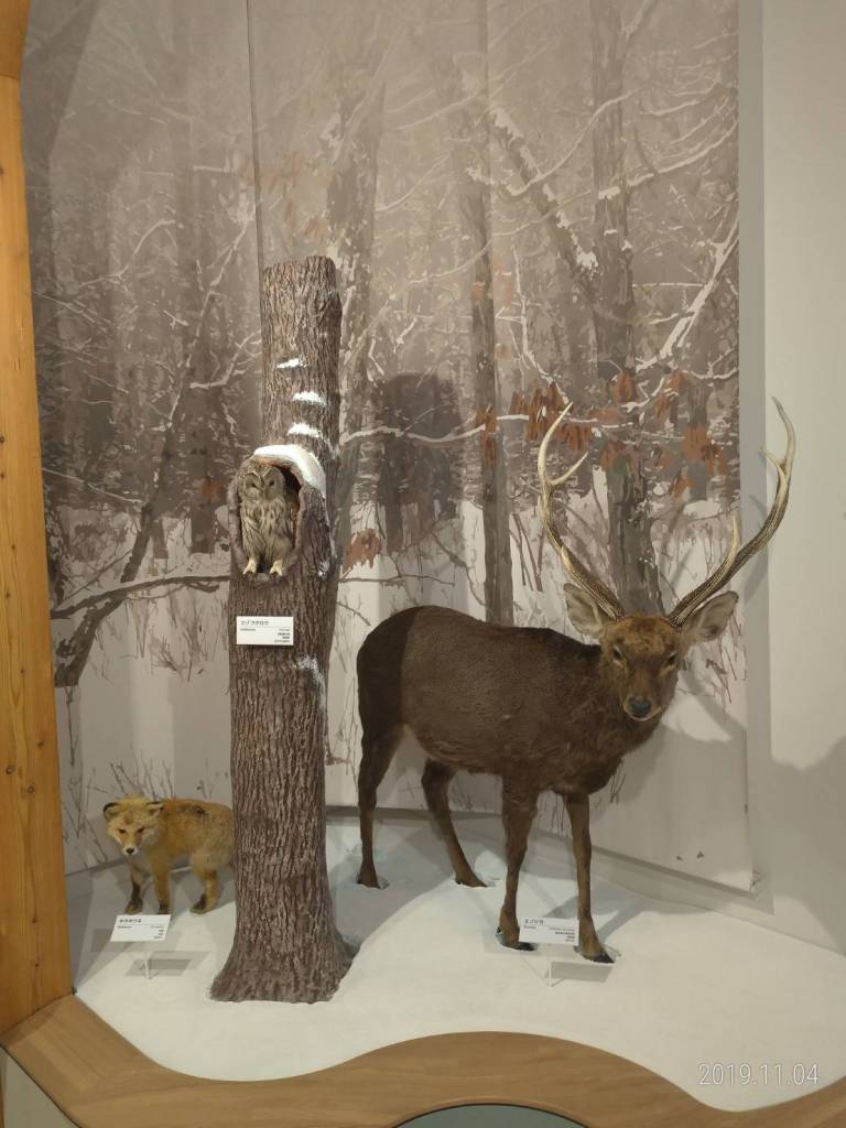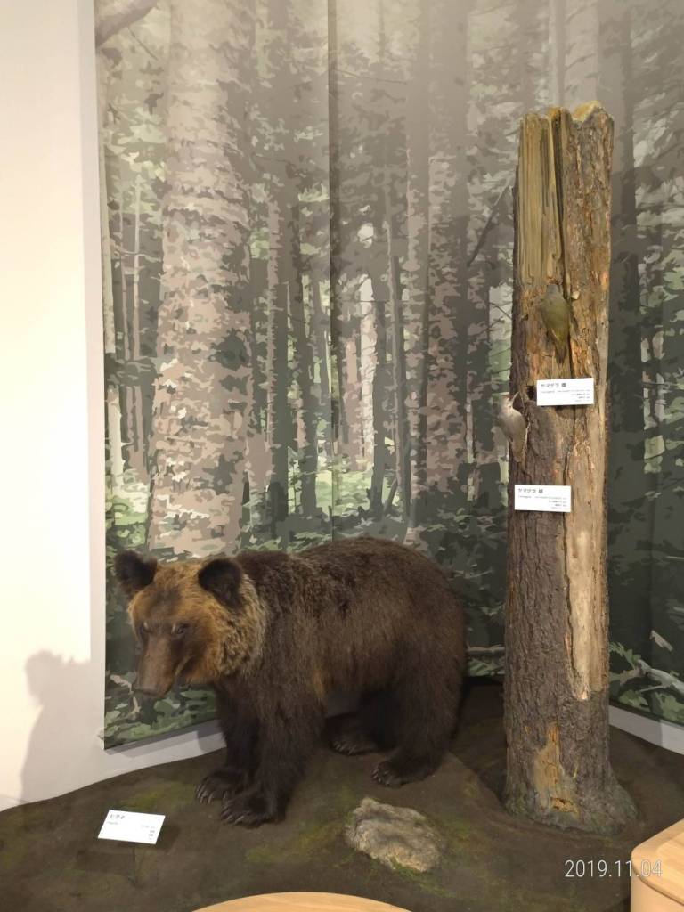 「姿見駅」裡面也有陳列許多動物的標本,也有租借雨鞋及登山杖供旅客去外面踏雪,而棕熊們在冬眠中,所以就不用買熊鈴了。