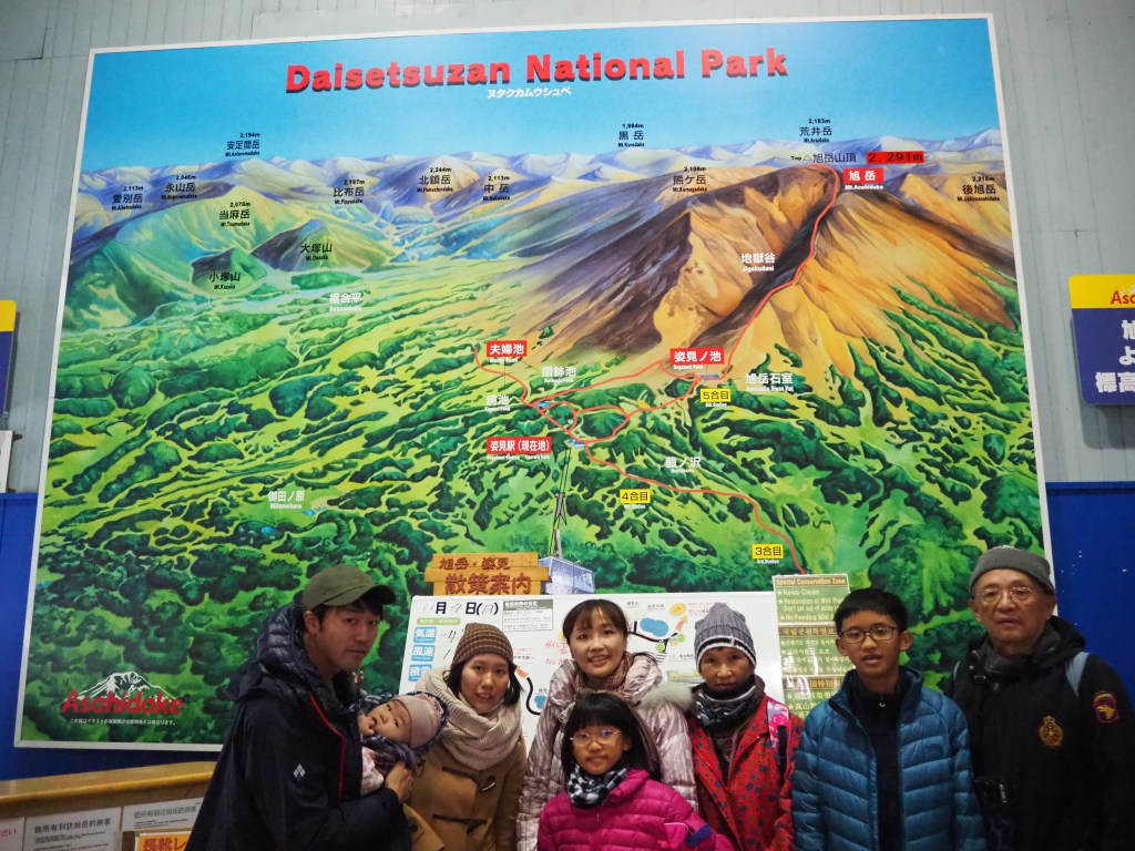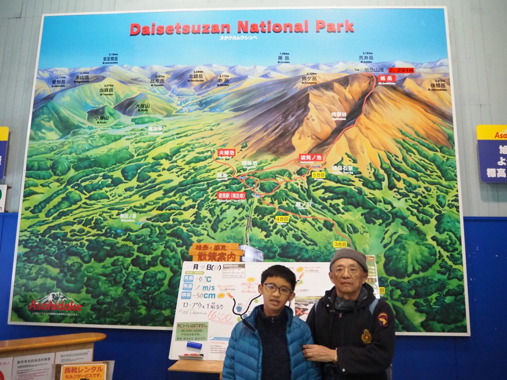 抵達「姿見站」,有一面「大雪山國家公園」的巨幅登山健行地圖。現在「姿見駅」是-7度。