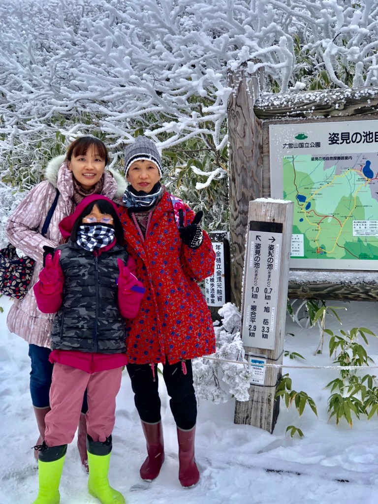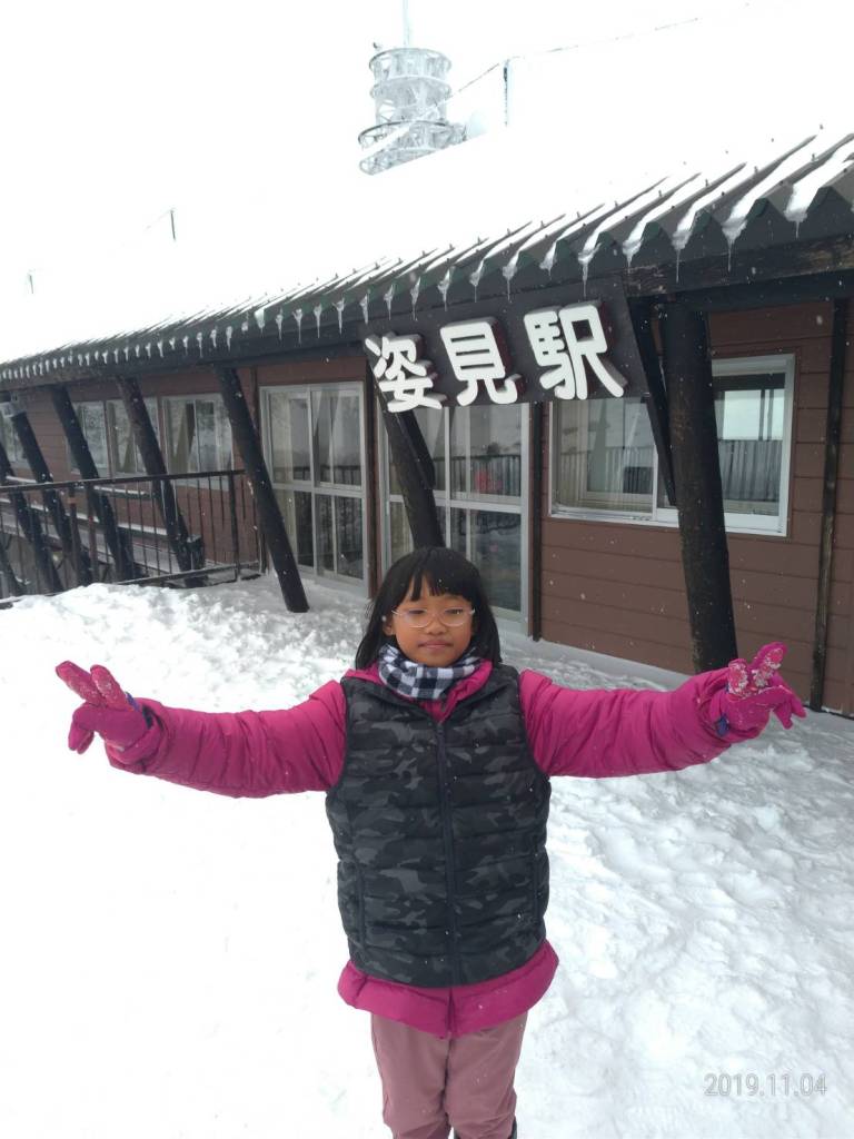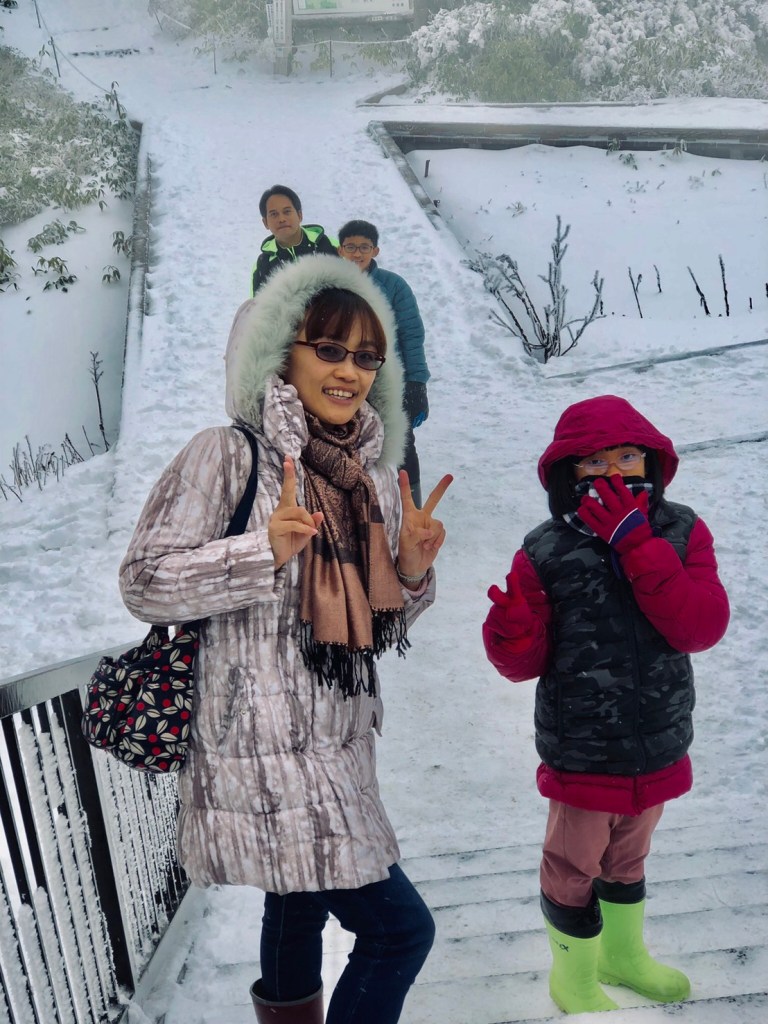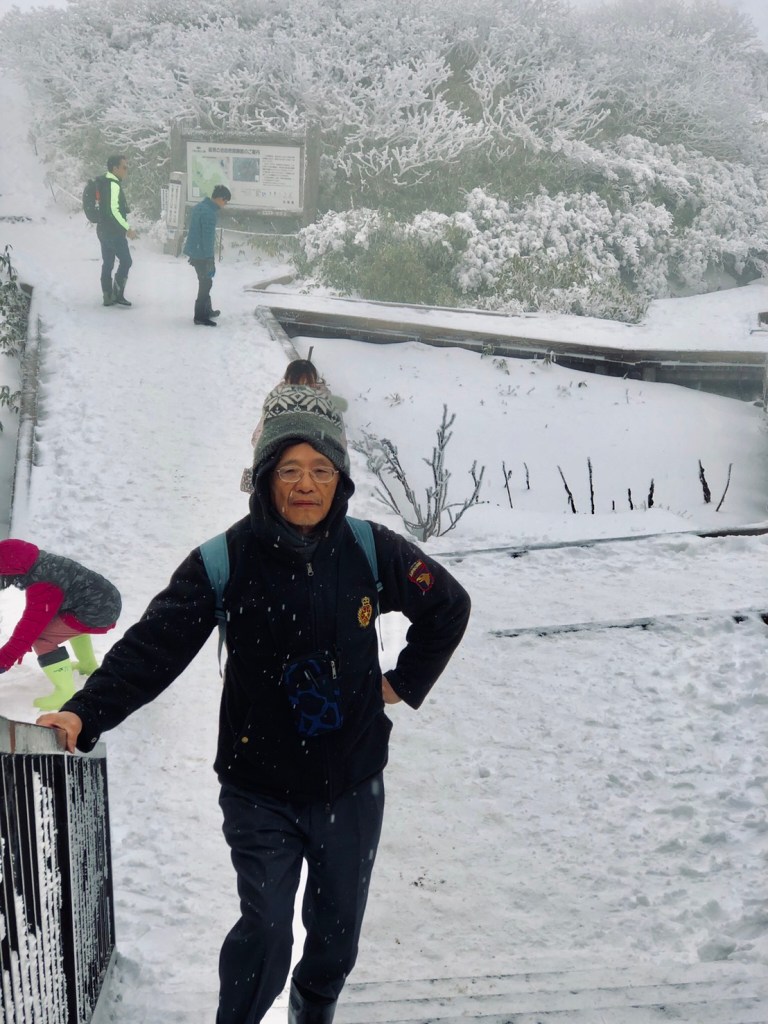 因為太冷了而且還霧濛濛一片,爸媽及瑜珊、古妹想留在車站附近取暖拍拍照就好,他們最遠走到100公尺處的「第一展望台」。