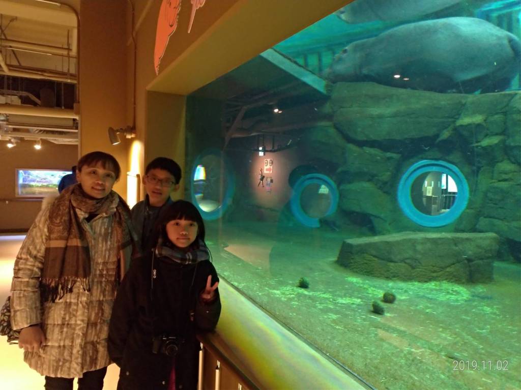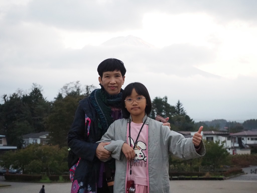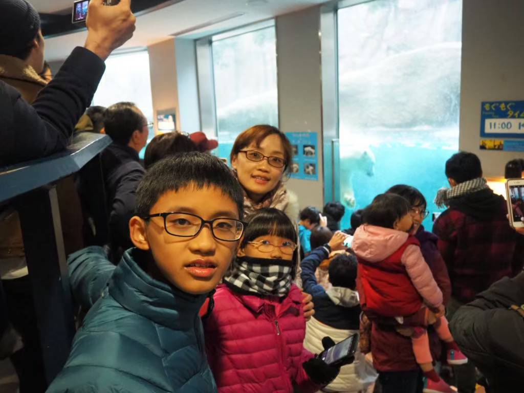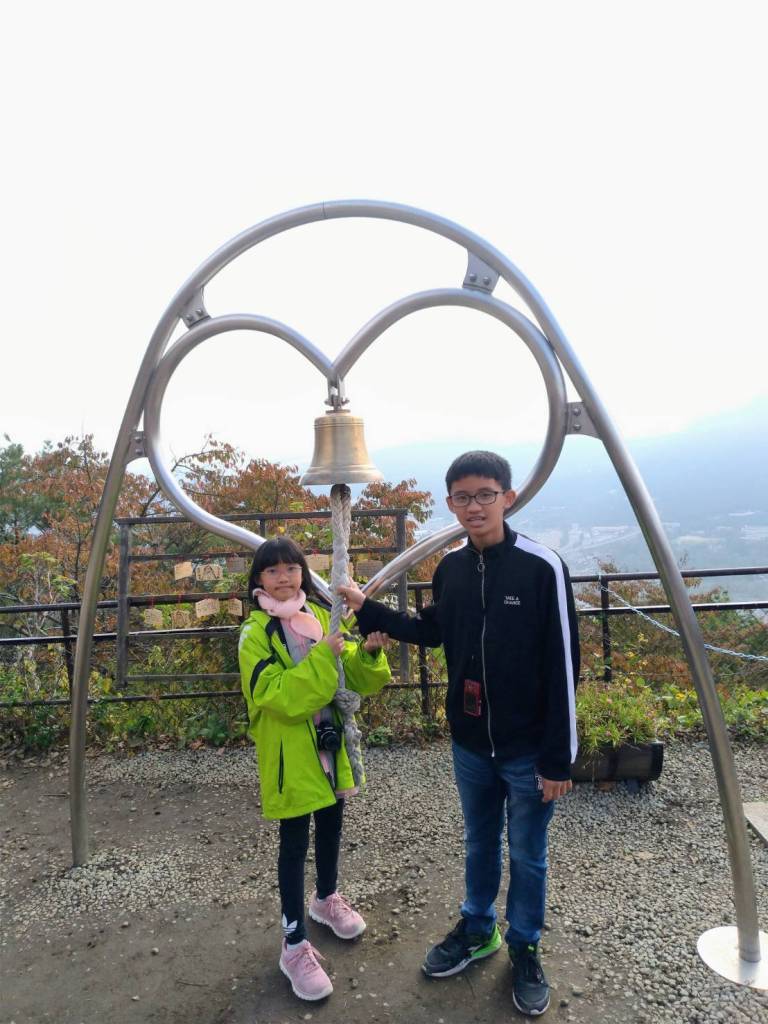 因為太冷了而且還霧濛濛一片,爸媽及瑜珊、古妹想留在車站附近取暖拍拍照就好,他們最遠走到100公尺處的「第一展望台」。