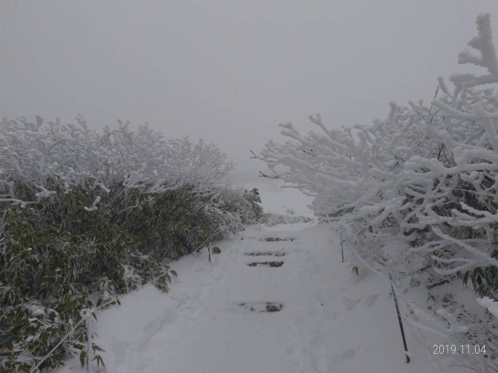 即使山徑已被白雪掩蓋不見,但還有繩索可以辨識山路的位置。