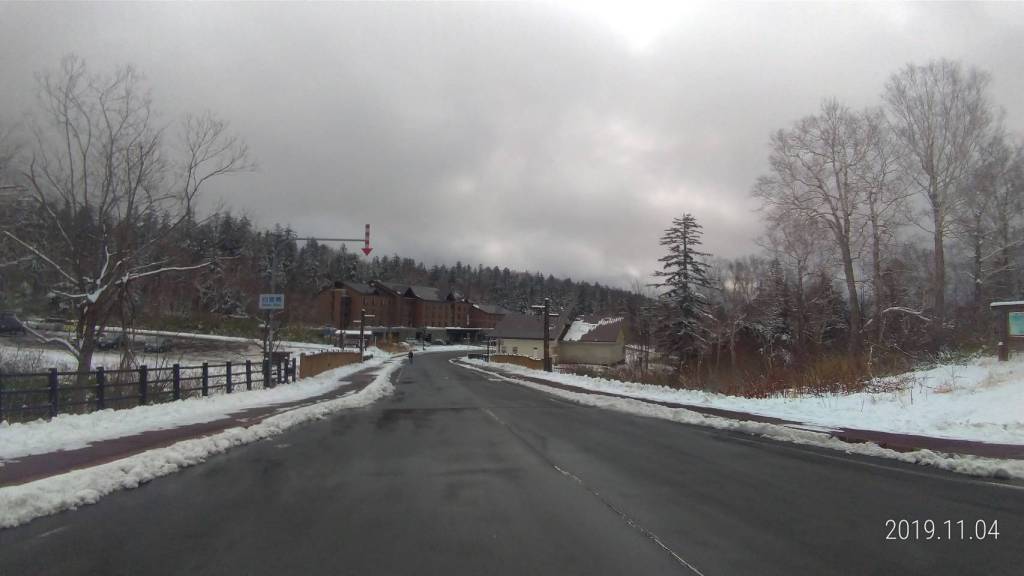 當我們接近這村莊時發現路面兩側都積著雪,中間柏油路還有結薄冰的現象,即使我們的車子都配有冬季防滑輪胎,但也讓我開著開著嚇出一身冷汗。