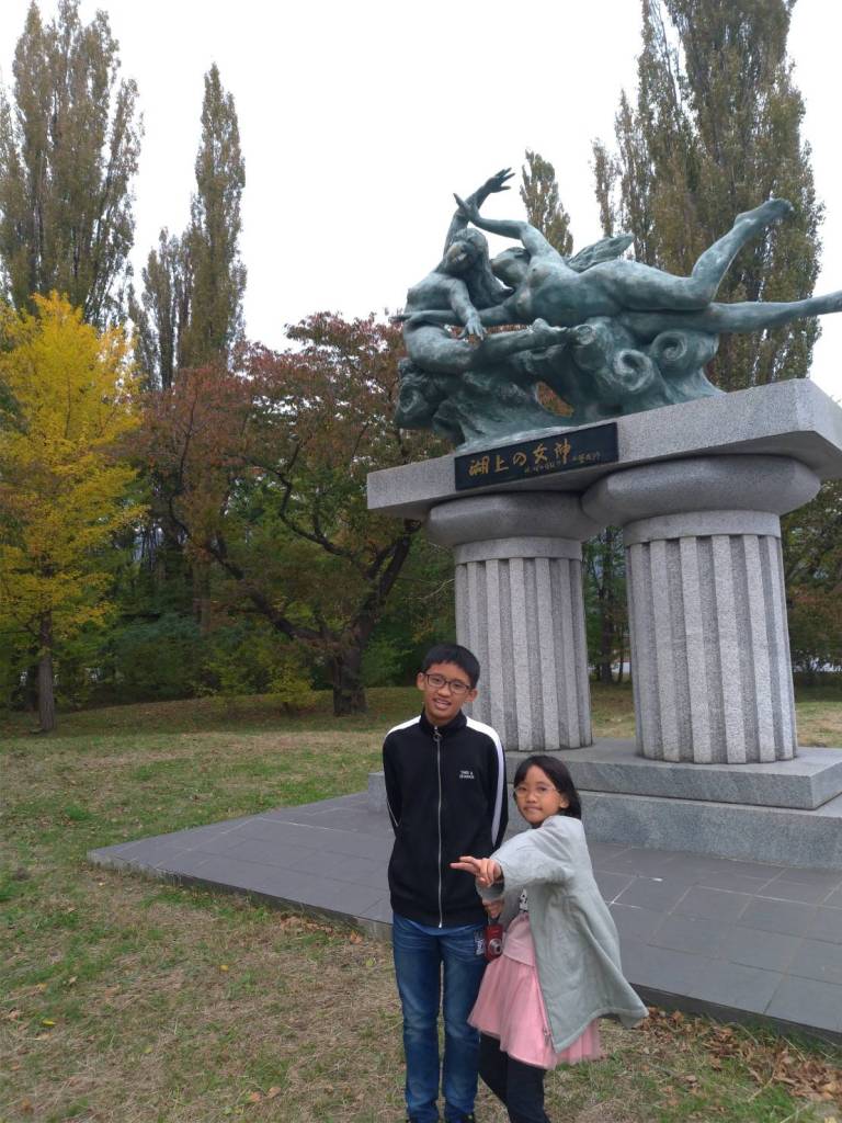 晚上打著燈閃耀的雕塑–「開拓のイメージ」,她是在1972年由藝術家「中井延也」所創作,高度有21公尺高,具有「昭和」時代「北海道」的質樸形象。