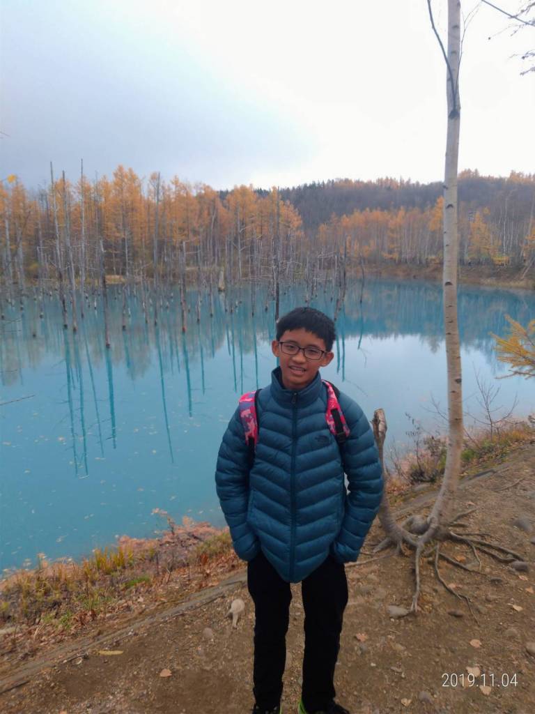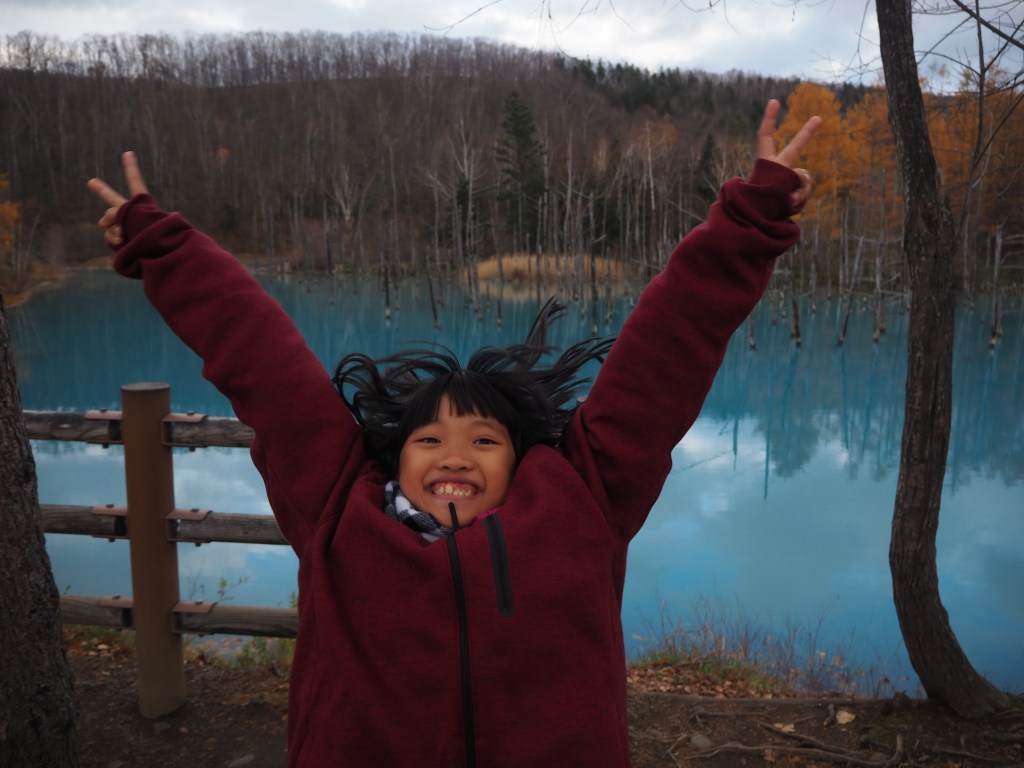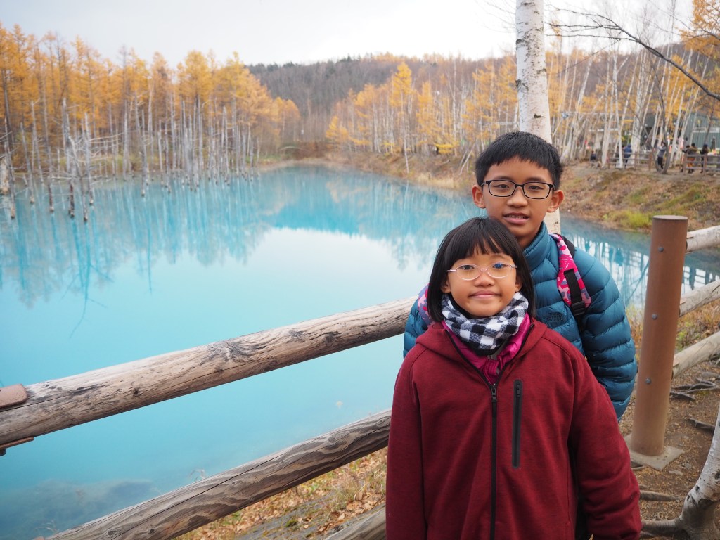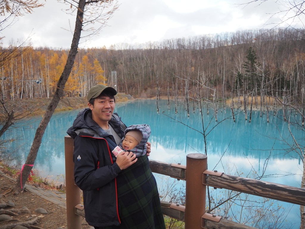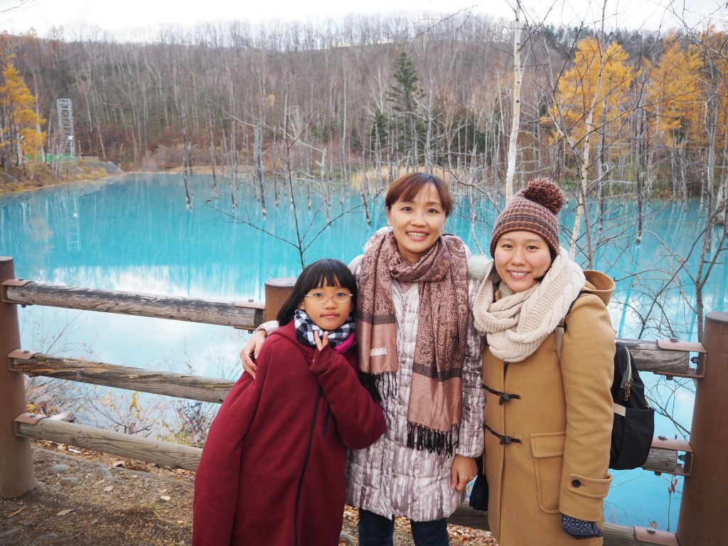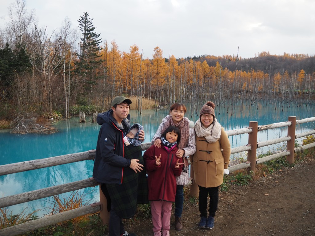 又開車40分鐘後,抵達「美瑛町」的熱門景點–「青池」,這是一座由攔河堤所形成的人工水池,其以湛藍且寧靜的落羽松景色聞名,吸引著不少的大自然愛好者,從停車場只需短程步行就可以到達。