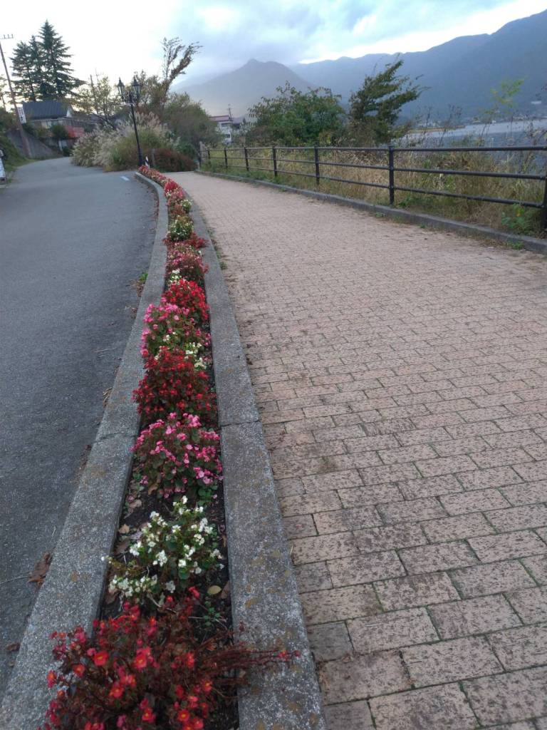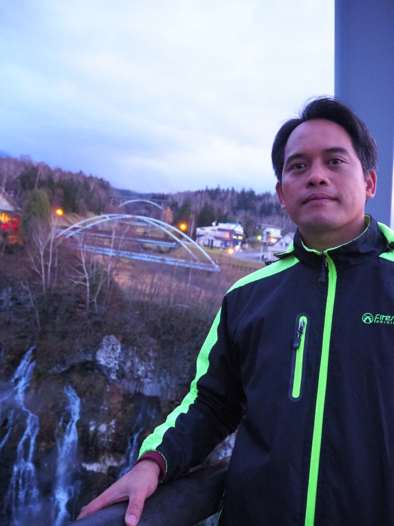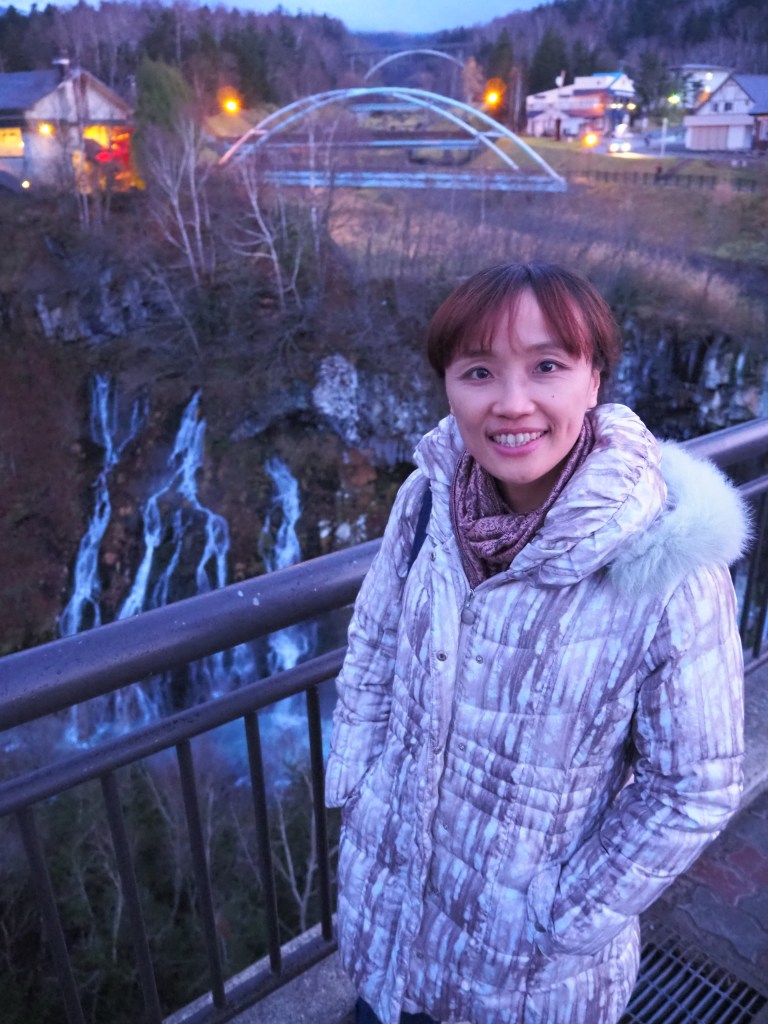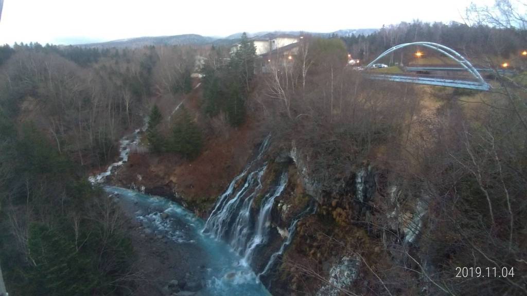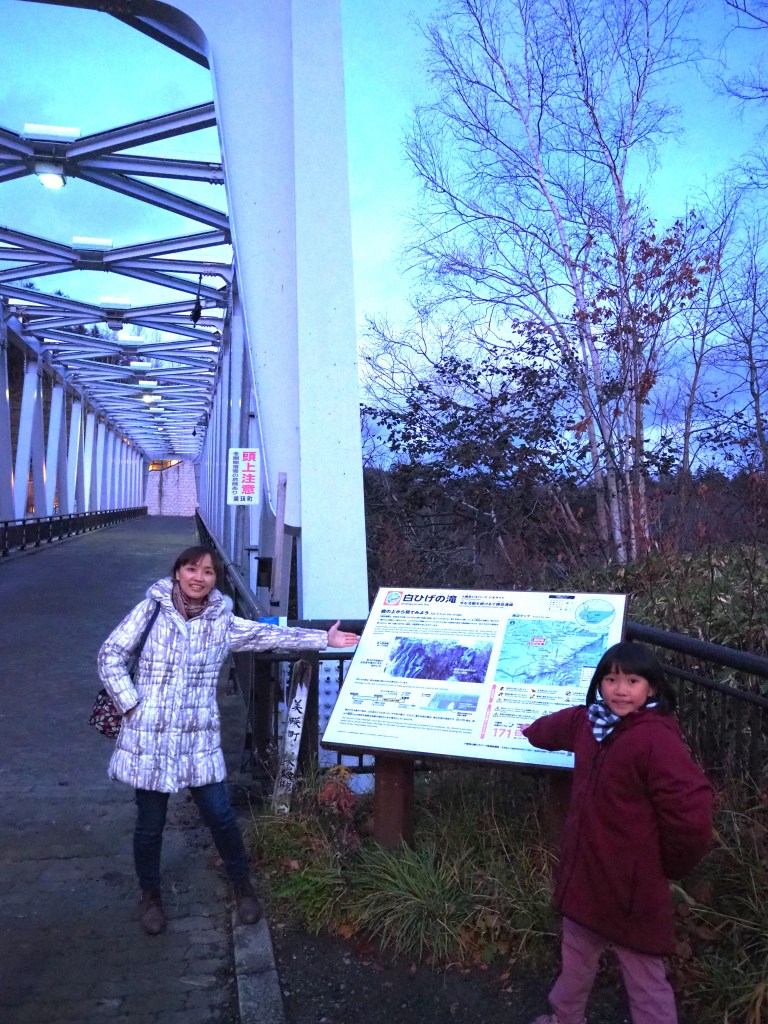 下午4點已經天色漸暗,我們走到附近的「藍川橋」,要去欣賞「白鬚瀑布」。