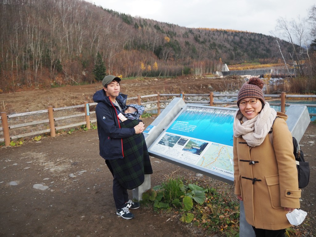 下山後經過一處水壩,稱為「忠別湖」,水壩堤頂上方可以行走,細細欣賞這裡的山清水秀,天氣好時更可以望見「旭岳」白頭暟雪。