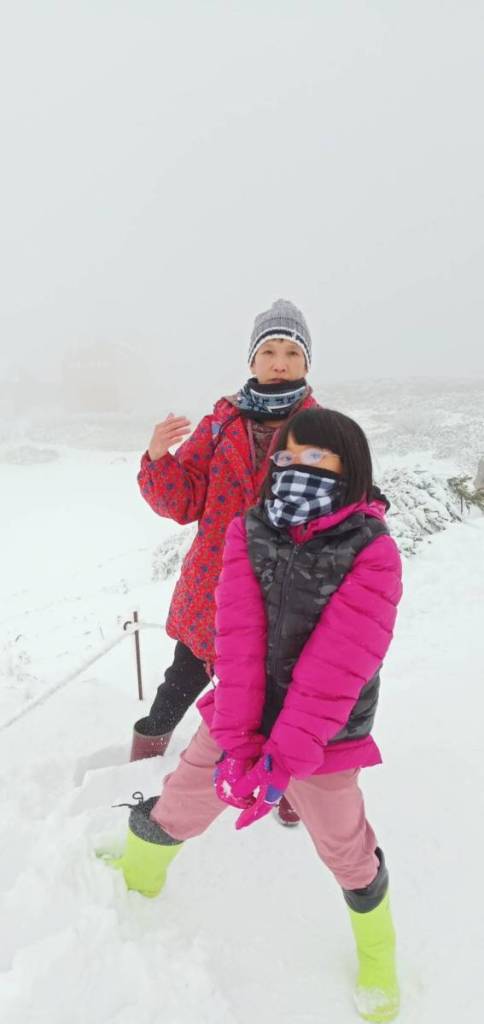 今年來到日本後第一次看到那麼多雪,露出觀光客本性的我們特別興奮。