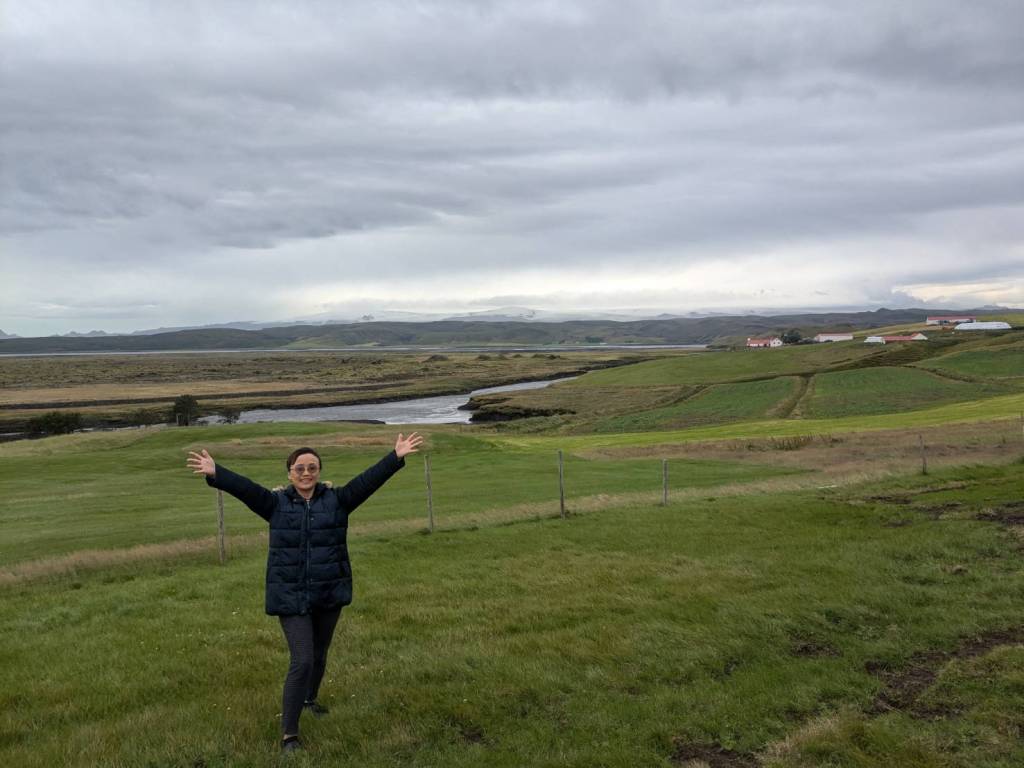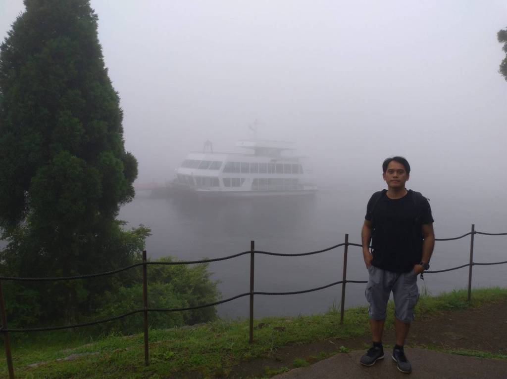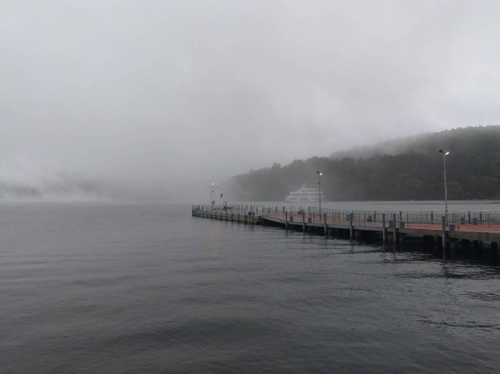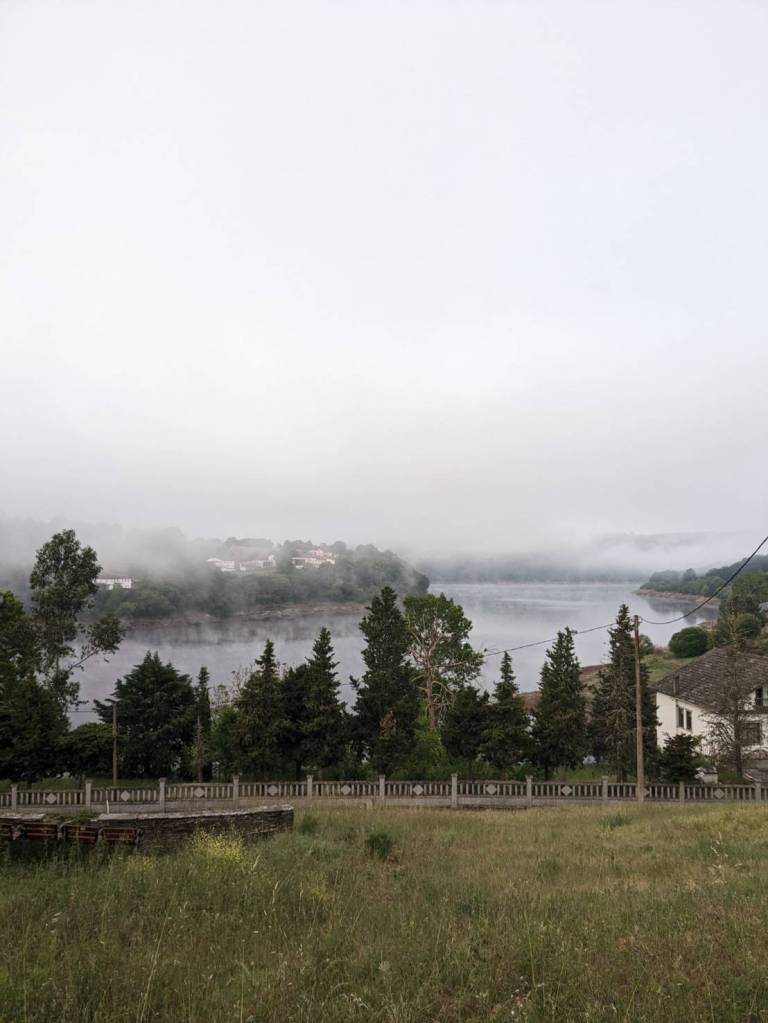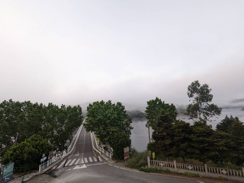 遠眺「米紐河」的殘霧晨景迷人,沒吃到早餐的鬱悶心情也不免振奮起來。