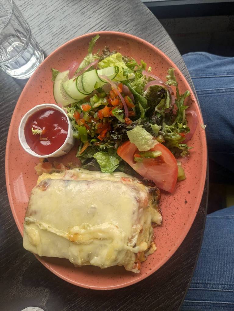 在這裡認識一位名叫法蘭的「義大利」男生,還碰見「英國」打工仔Amy,大家邊聚首聊天,邊享用早餐,我點了5.5歐元培根蛋、麵包及咖啡牛奶(Café Noche),不錯的犒賞與享受。