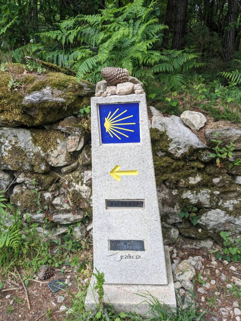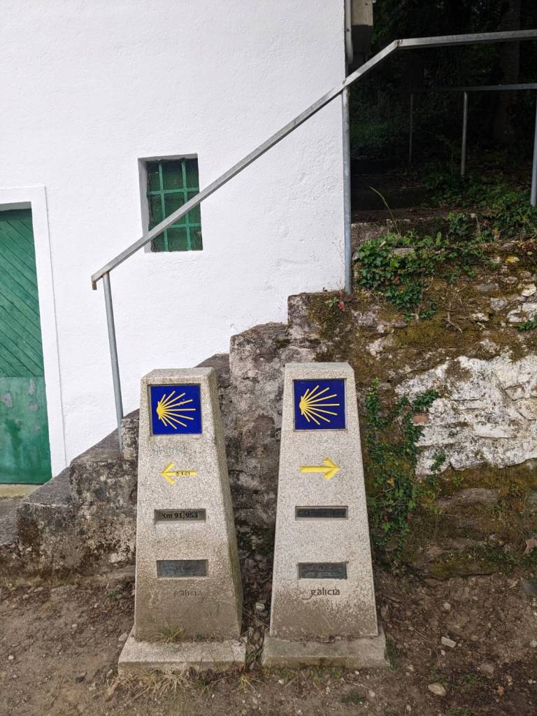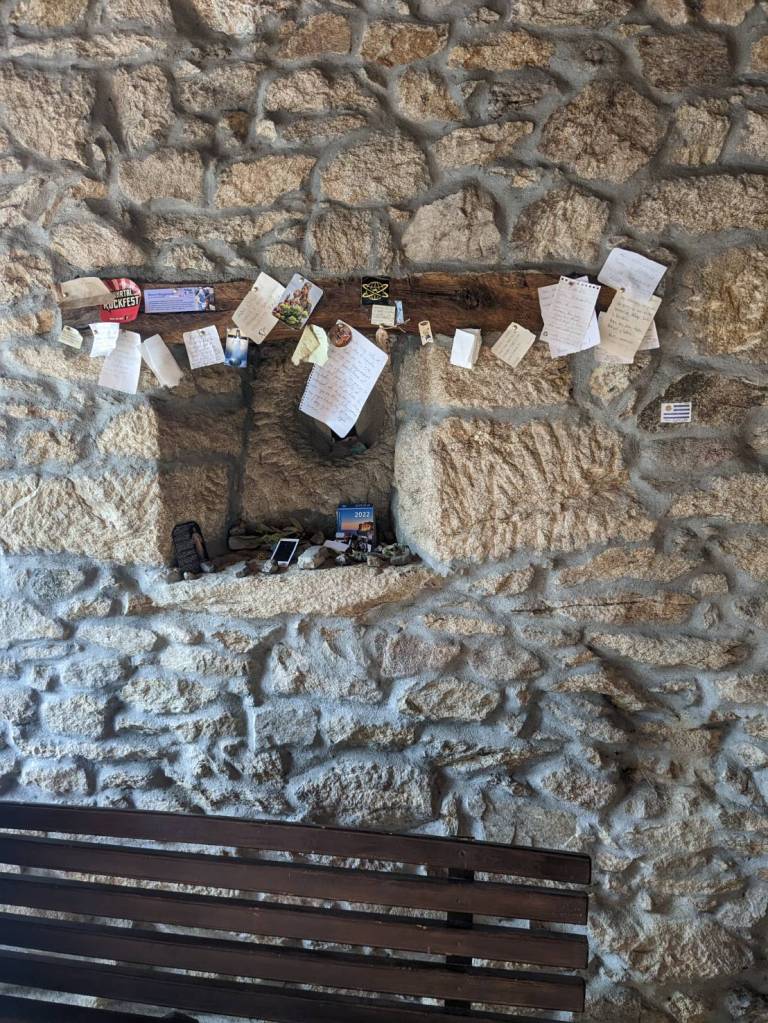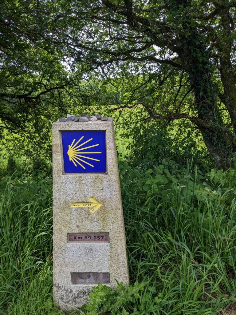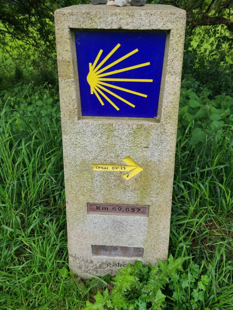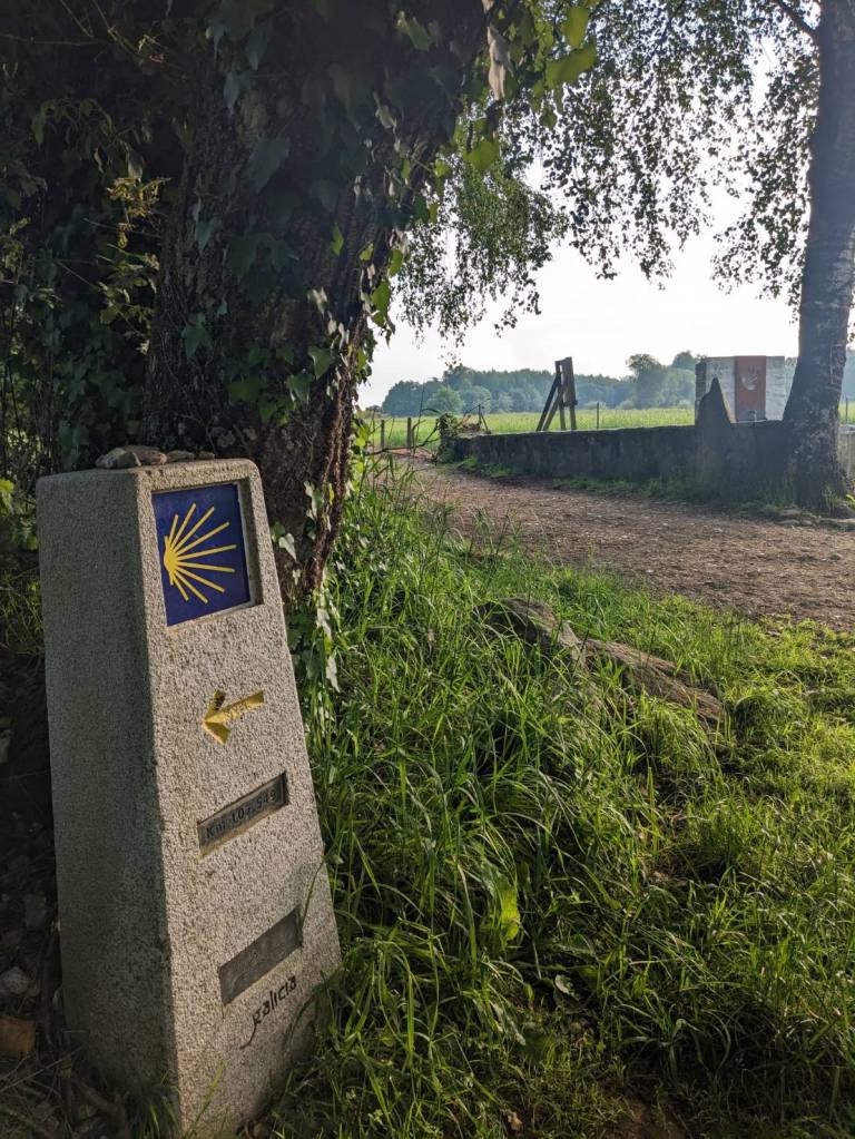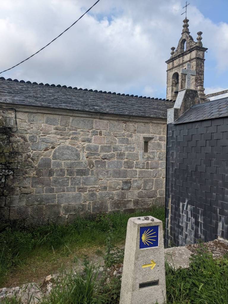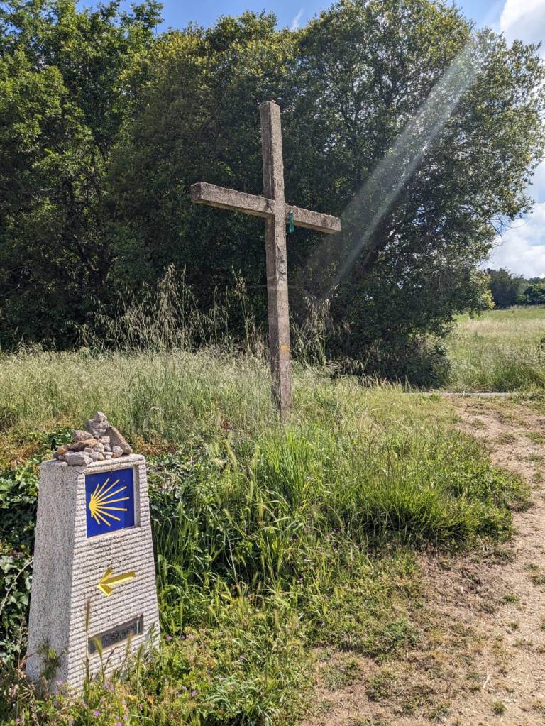 在進入Ligonde小鎮之前,我們看到一座建於1670年的紀念碑「拉梅爾斯十字架」(Cruceiro De Lameiros),它的獨特之處在於十字架底部的四個側面,有頭骨、荊棘王冠、錘子及釘子,據說象徵著「基督」的苦難;而十字架的頂端是雙面的,一面是「基督」,另一面是悲傷的「聖母」。下方底座的階梯放滿著朝聖者們字字句句的祝福與祈禱。