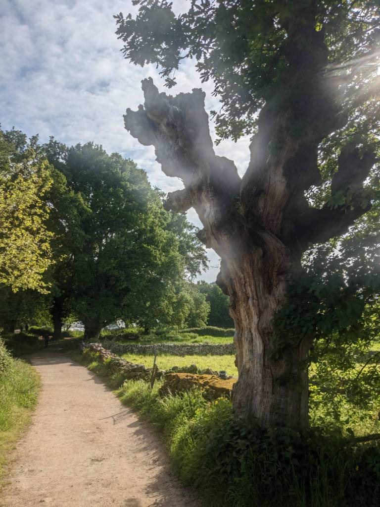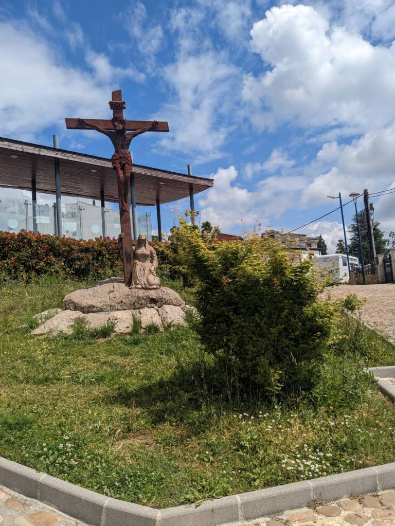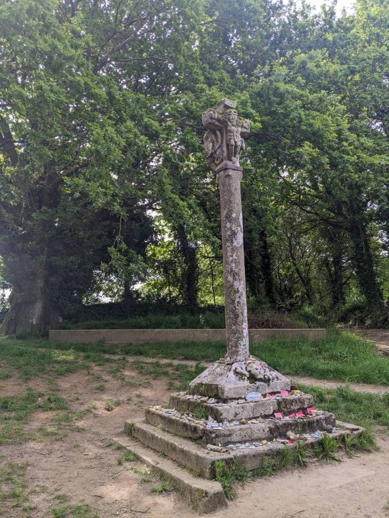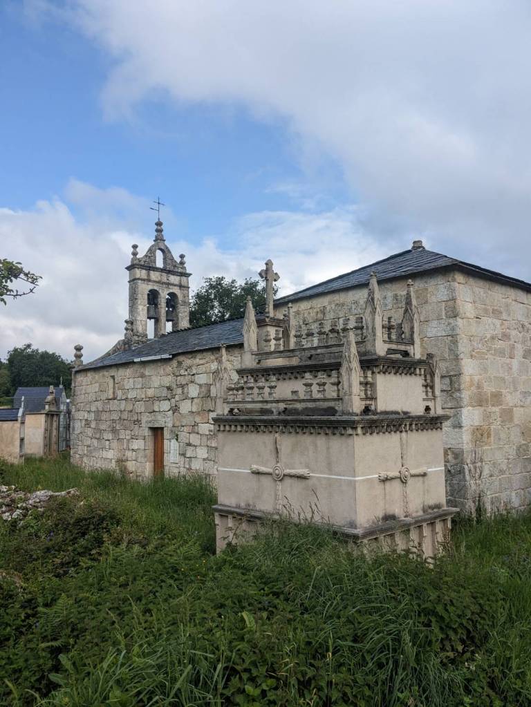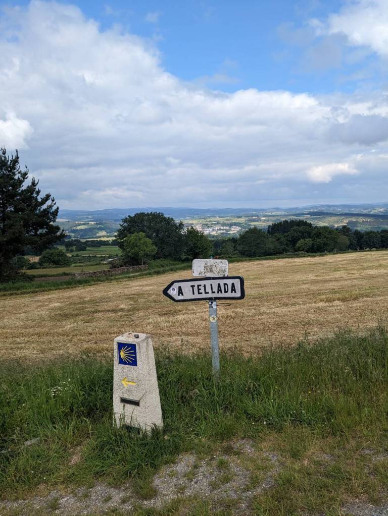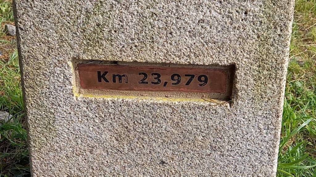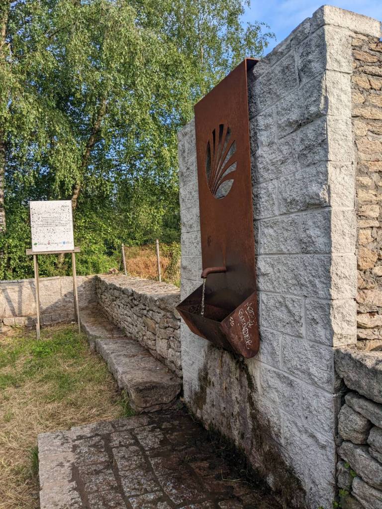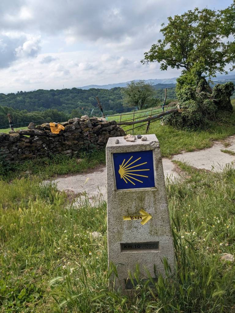 在進入Ligonde小鎮之前,我們看到一座建於1670年的紀念碑「拉梅爾斯十字架」(Cruceiro De Lameiros),它的獨特之處在於十字架底部的四個側面,有頭骨、荊棘王冠、錘子及釘子,據說象徵著「基督」的苦難;而十字架的頂端是雙面的,一面是「基督」,另一面是悲傷的「聖母」。下方底座的階梯放滿著朝聖者們字字句句的祝福與祈禱。