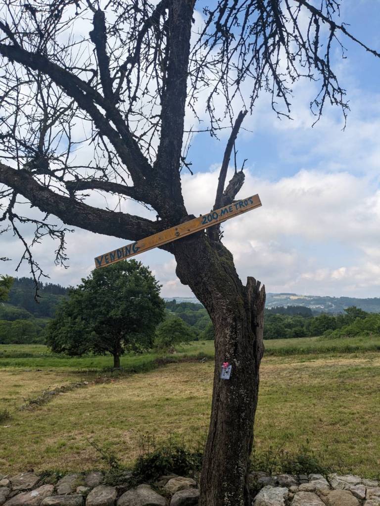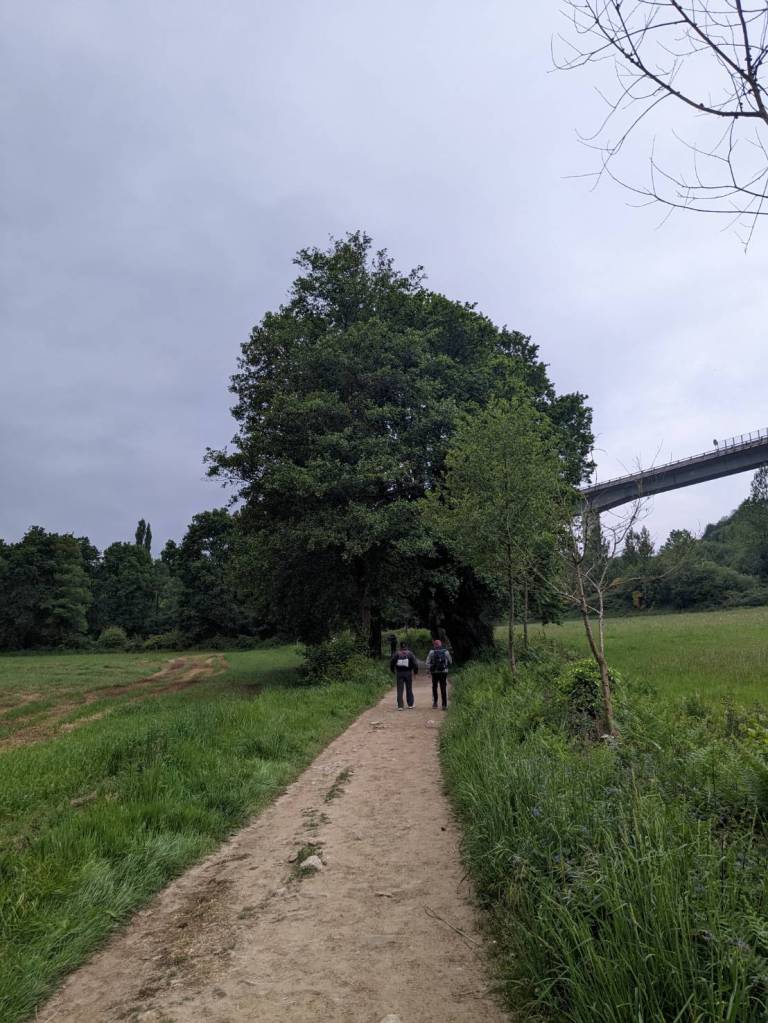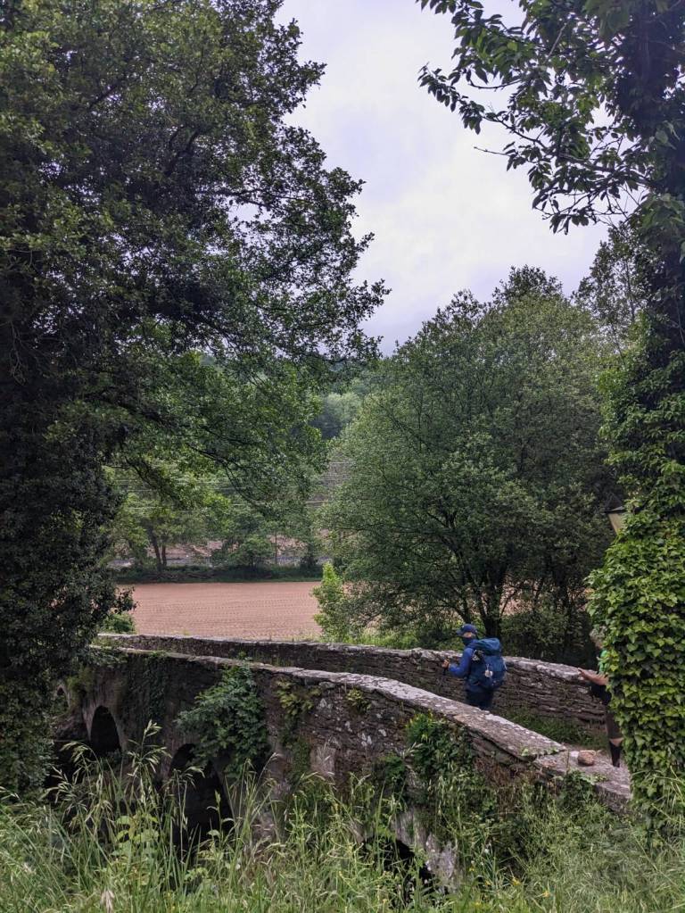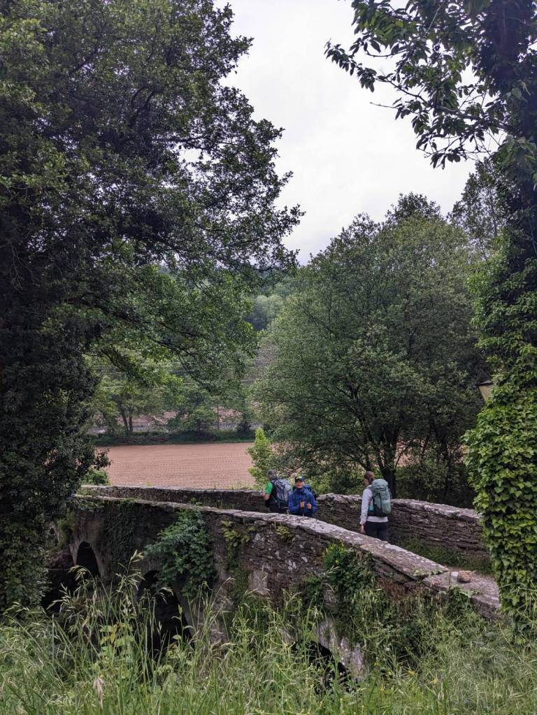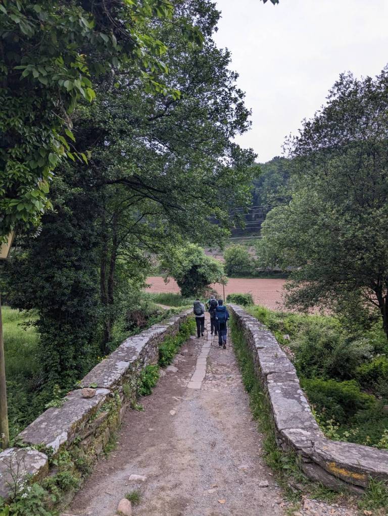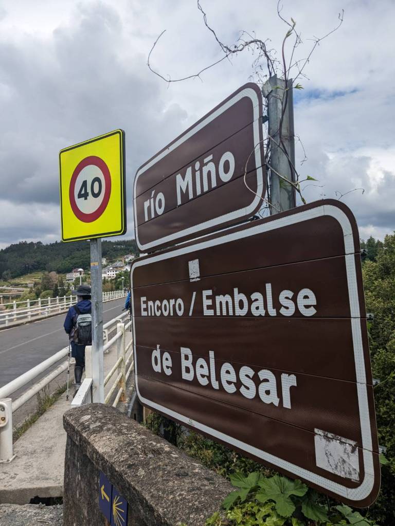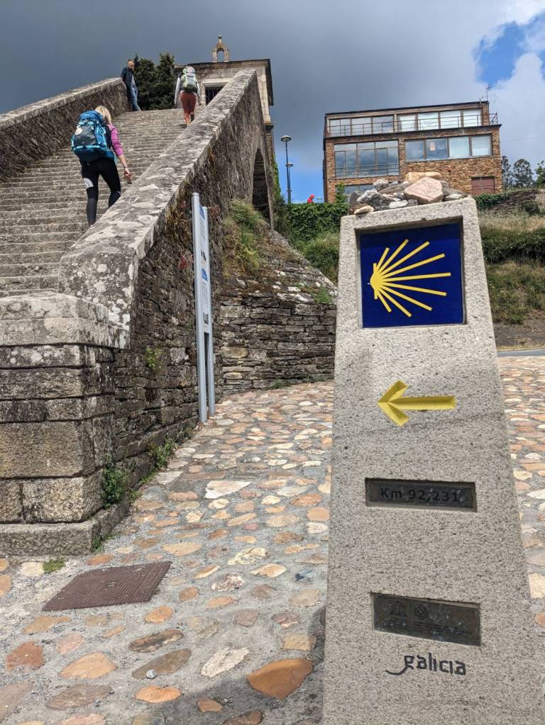 橋的另一端有兩個朝聖路標,我們後來選擇向右走的路線,雖然路程短但較為坡陡難走,其實也沒什麼差距存在。