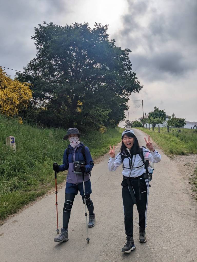 10:50分經過O Hospital小鎮,目前已走了12公里了,相對Rebe的冷感,Amy對於跟拍的熱情與動作都很配合。