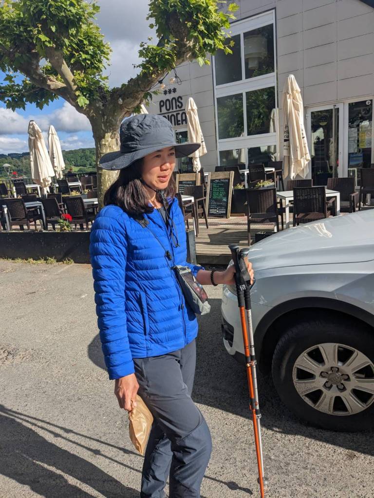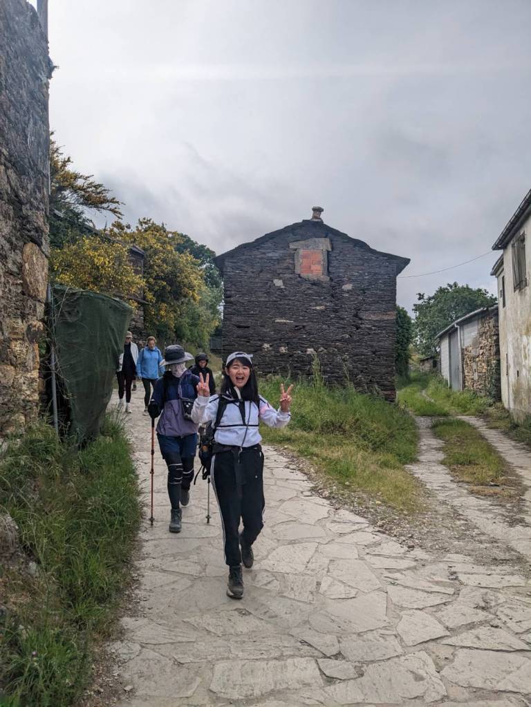 即將進入Ventas de Narón小鎮,Rebe又再度興奮地擺出招牌動作。