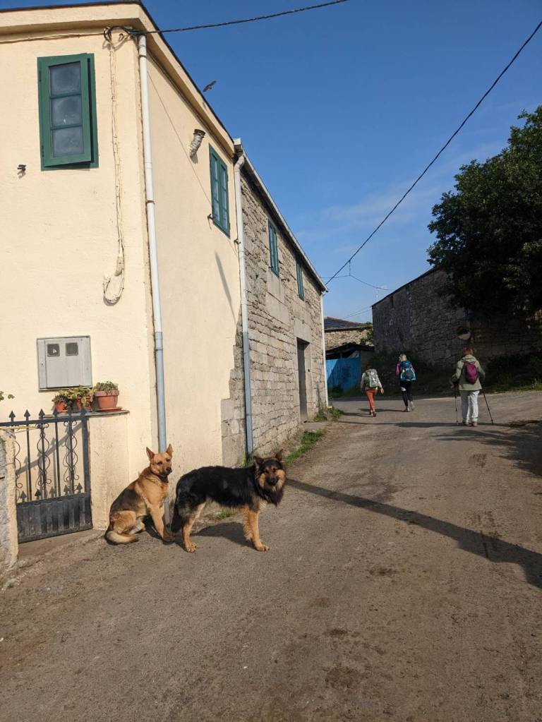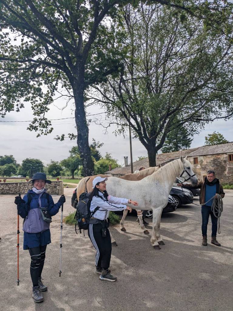 經過不知名的小村落時,看到兩位駕著馬、威風凜凜的騎馬朝聖者。