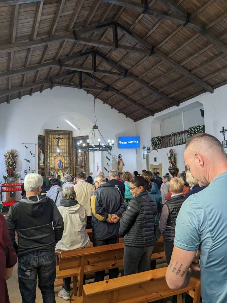 這時Amy問我們要不要去「聖蒂爾索教堂」(Igrexa de San Tirso de Palas de Rei)作「彌撒」,幾經討論後我們決定去初體驗一下。7點進入教堂時正面座位幾乎已滿位,所以我們坐在側方聽神父們輪番上台祝禱,最後排隊去領取聖餅及聖經字條,出來已經7:50分了,而我學得的寶貴經驗是–作「彌撒」時不要坐在Rebe旁邊…