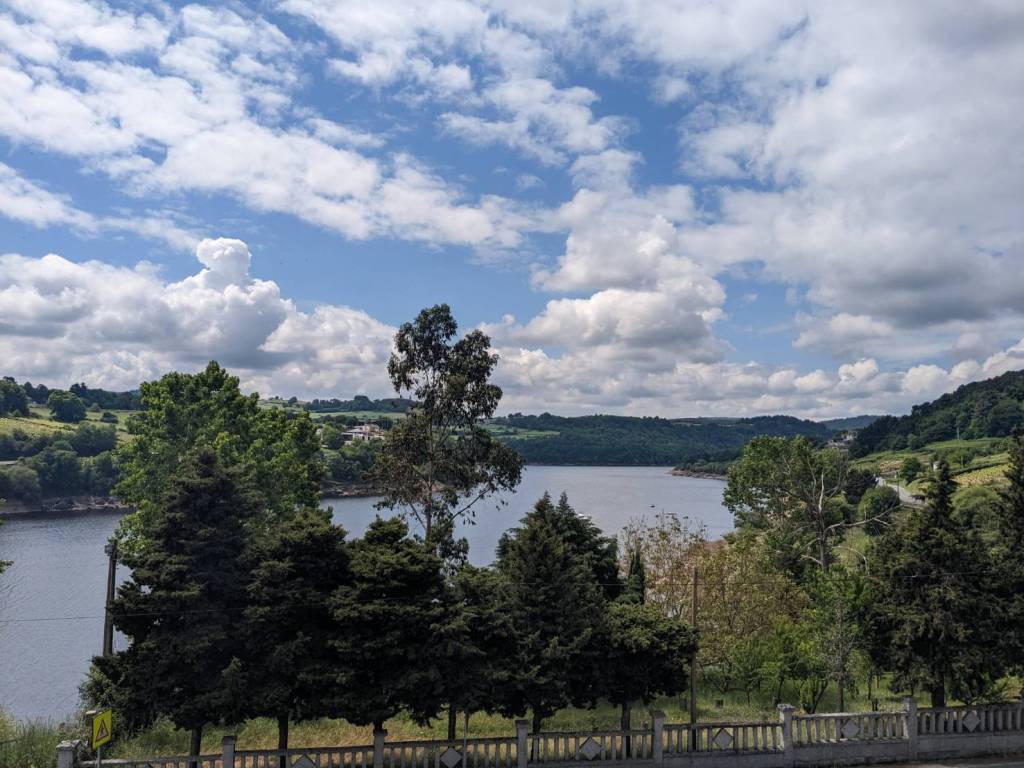 2:20分經過O Rosario小村莊時,巧遇韓國Kim Mikyoung姐,原來她的公車只能坐到附近下車,她還有3公里需要走;此時她正和她老公視訊,看著這一側開著小黃花的田園景色,我跟Rebe都去跟他說一聲「歐巴」及「兄」,小談一會就暫別各自出發。