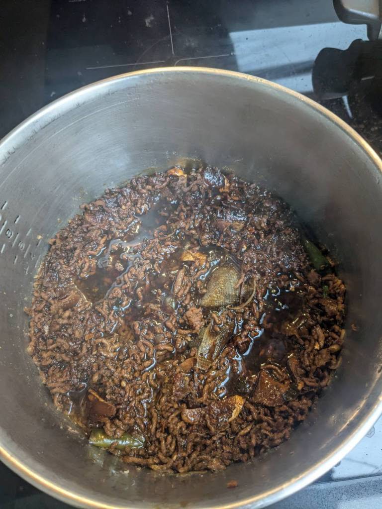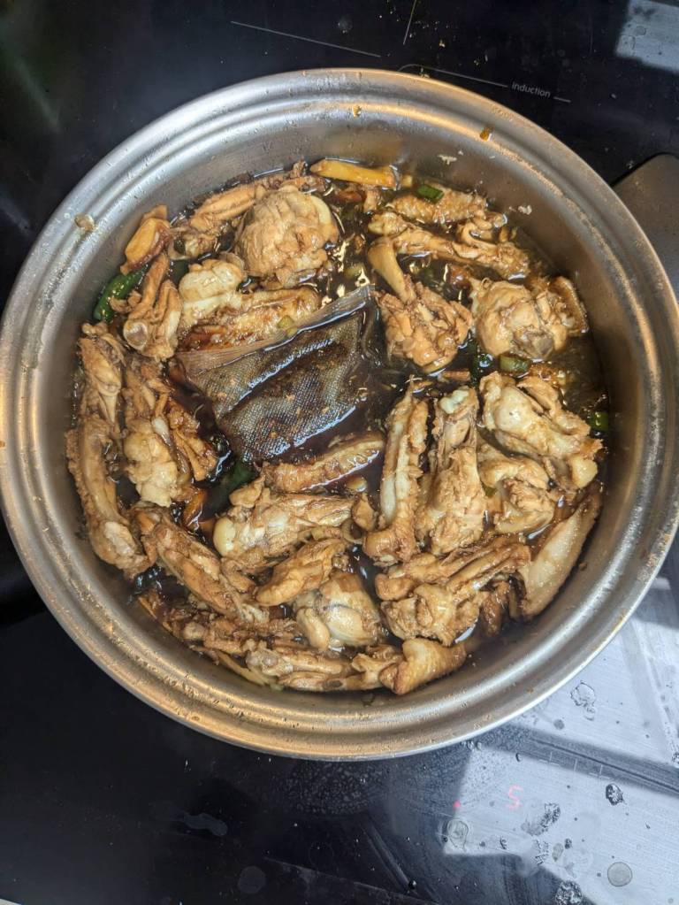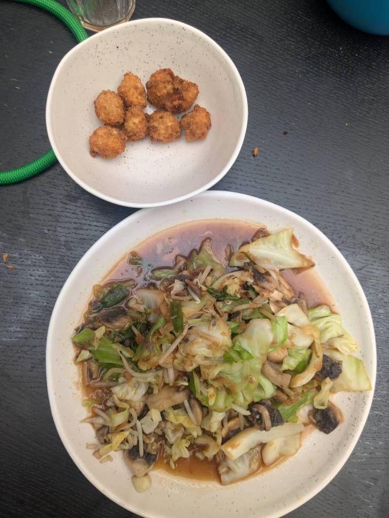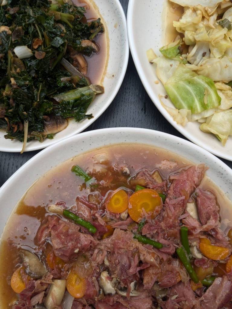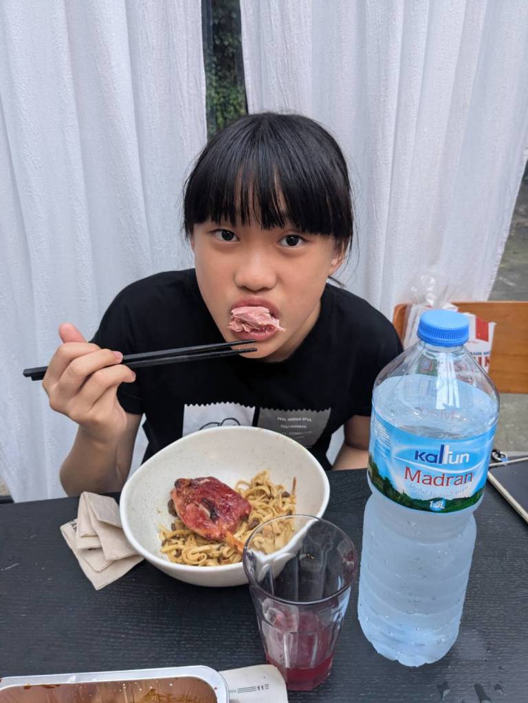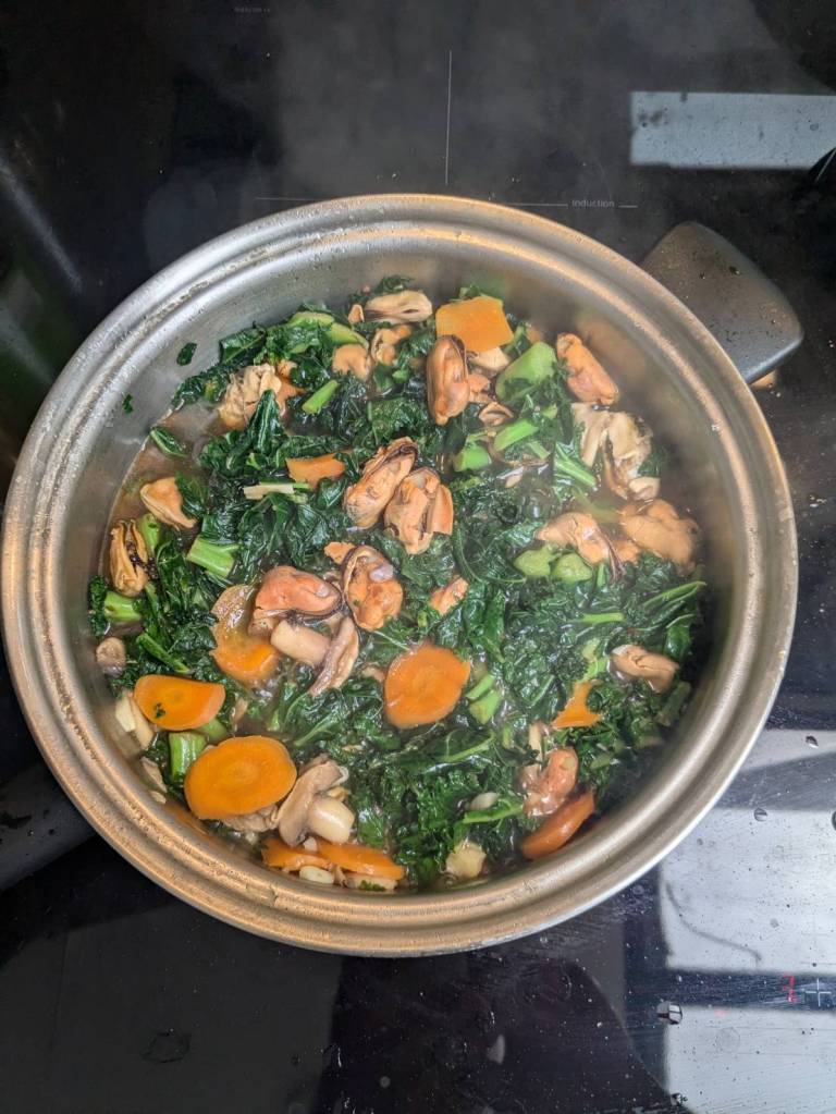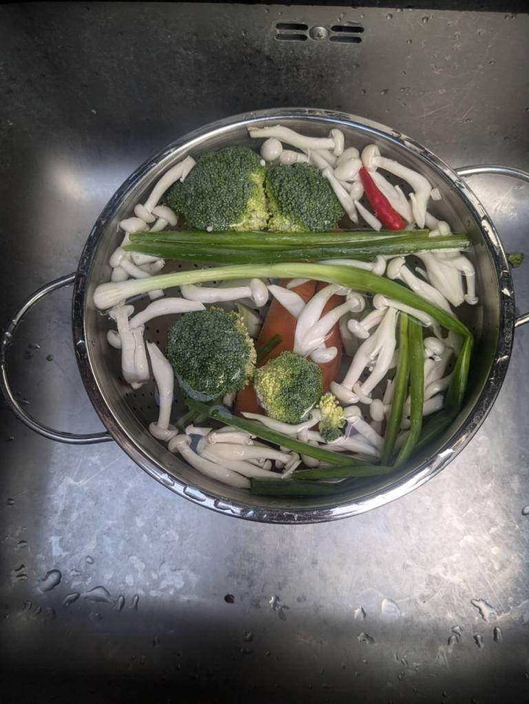 因為小孩子們昨晚吃了很豐盛的火鍋,所以今早只準備了肉燥飯、炒家常菜及海帶芽湯孝敬他們。