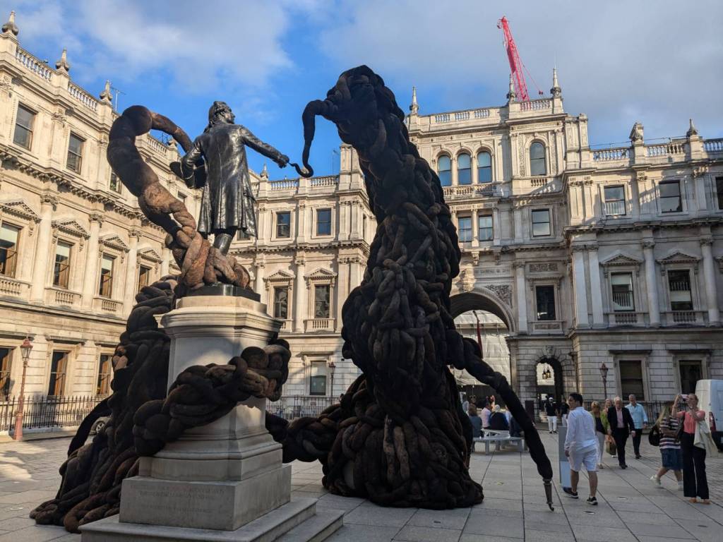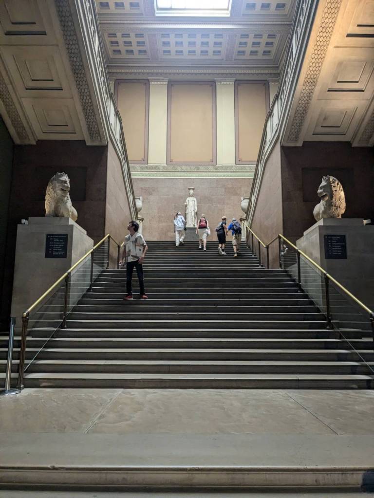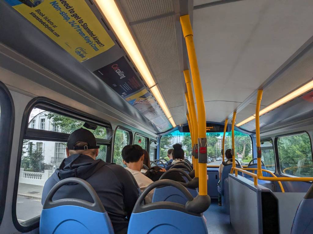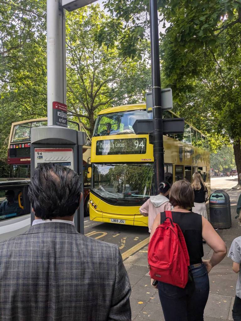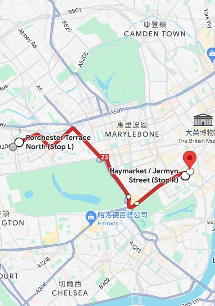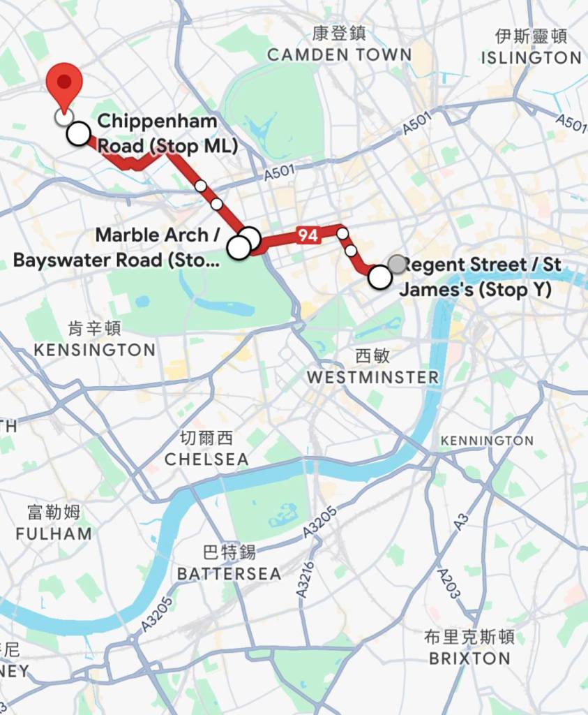 下課後,庭睿約班上「土耳其」同學Halil一起參觀「國家美術館」(The National Gallery),我們還搭上特別少見的黃色「94號」公車,但也是惡夢的開始。出發沒幾站,公車就在「蘭開斯特門站」(Lancaster Gate)拋錨了,司機也沒講原因,呆坐在上層的我們等待了約20分鐘後,我們就下車要換乘別輛公車時,才驚覺下層乘客已經跑光了,只剩司機在東摸西摸地幫公車實施「心肺復甦術」;我們小跑到後方搭上剛進站的紅色「94號」公車,才慶幸自己朝目標更往前一步時,又在500公尺遠的「龐德街」(Bond Street)「顧路」了,很妙的是司機都沒有廣播,也是要等到我們隨著別的乘客莫名其妙下車時,才知道車子故障了…